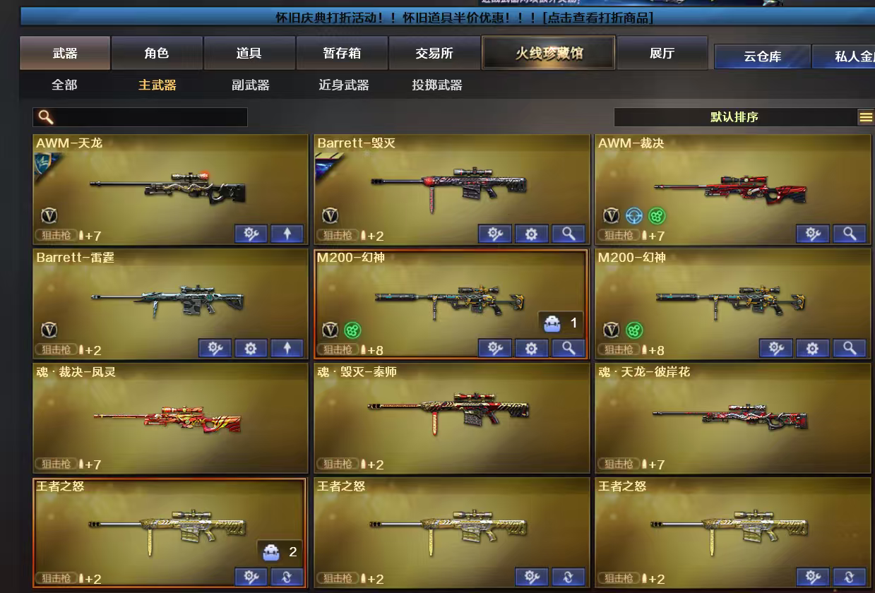 m200幻神/雷霆7套/雷神 裁决/火麒麟/金色蔷薇/白虎 黑龙/黑骑士/朱雀/无影/毁灭/天龙/毁灭-AG-CFPLS15冠军皮肤/火麒麟传奇EVEN皮肤/天龙传奇白鲨皮肤/火麒麟冠军之心皮肤/雷神白鲨CFPLS14冠军皮肤/雷神冠军之破皮肤/毁灭冠军之怒皮肤/角色 葵/樱/炫/王者葵貂蝉/王者零/王者樱热浪之夏/王者瞳闭月羞花/炽天使/王者零传说之路/新灵狐者/雷神音效卡/火麒麟音效卡/毁灭音效卡/黑骑士音效卡;
