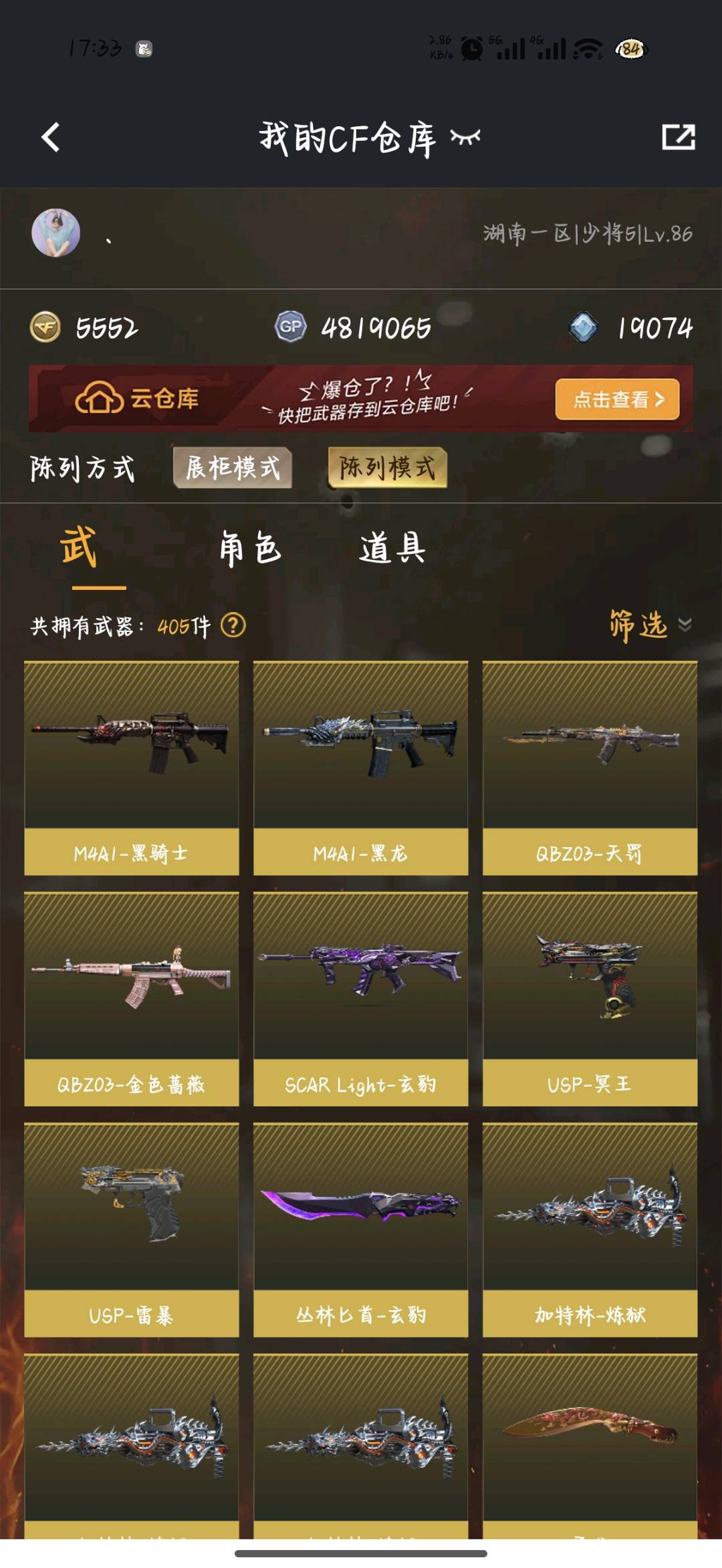• 游戏区服:穿越火线 / 电信区 / 湖南一区