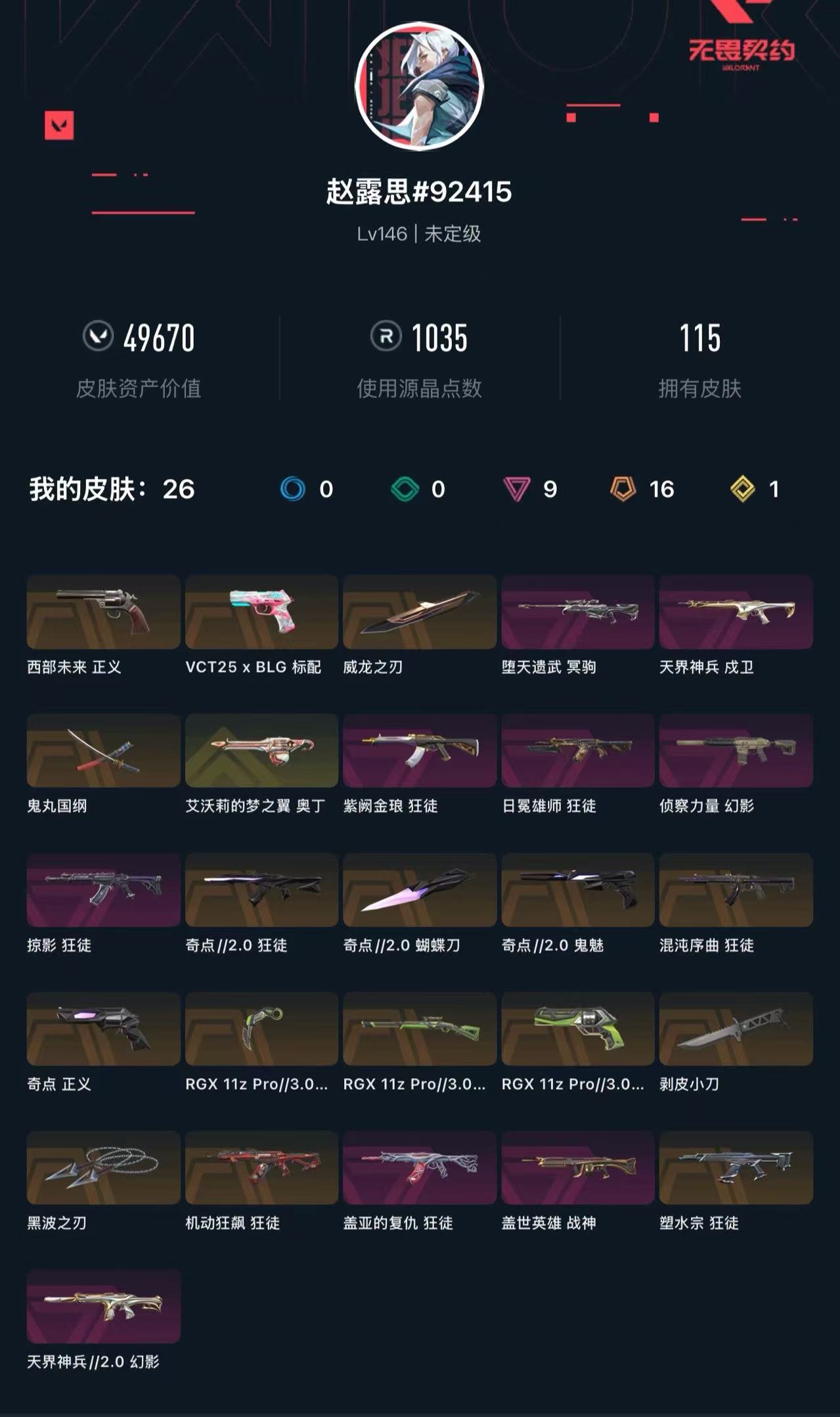 • 游戏区服:无畏契约-wegame / wegame / wegame
