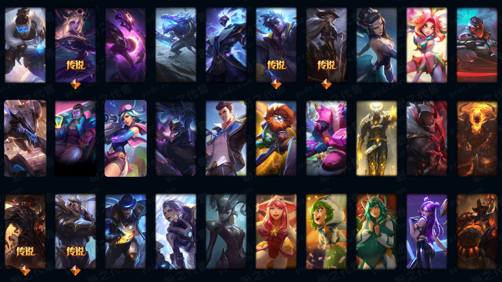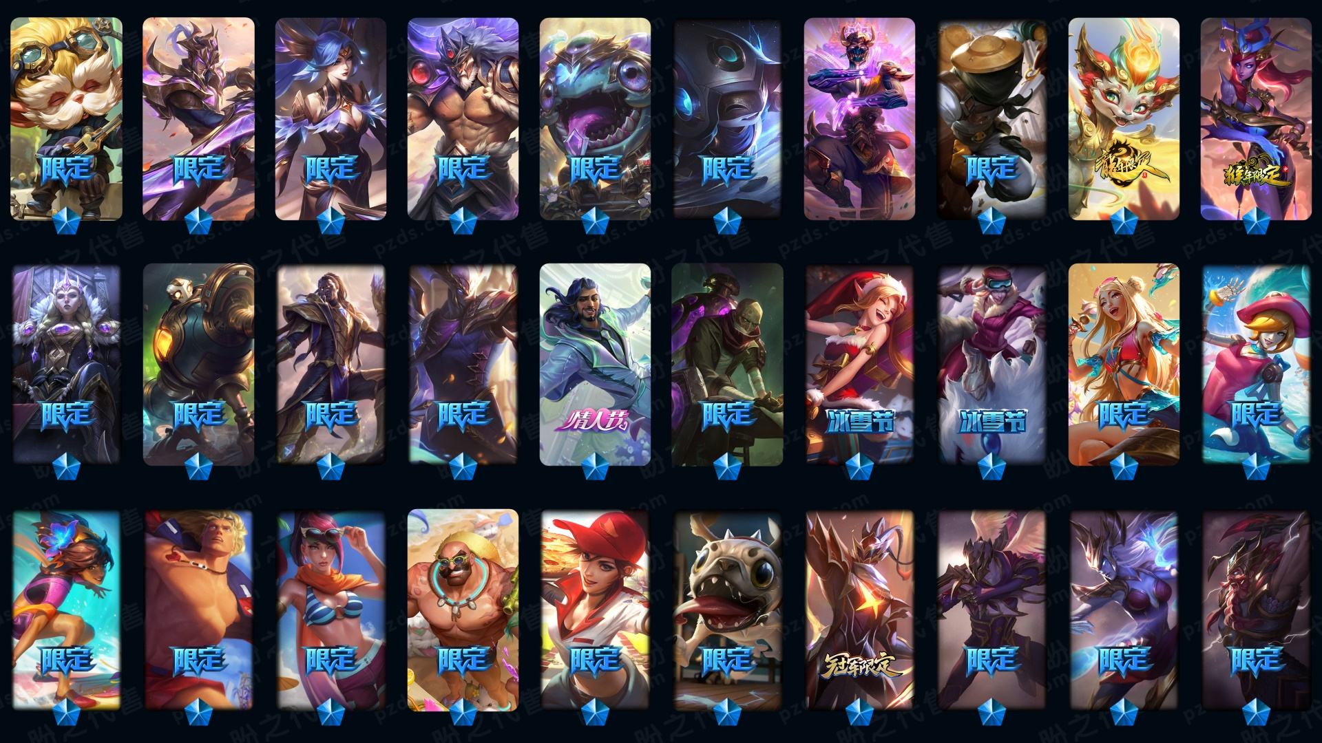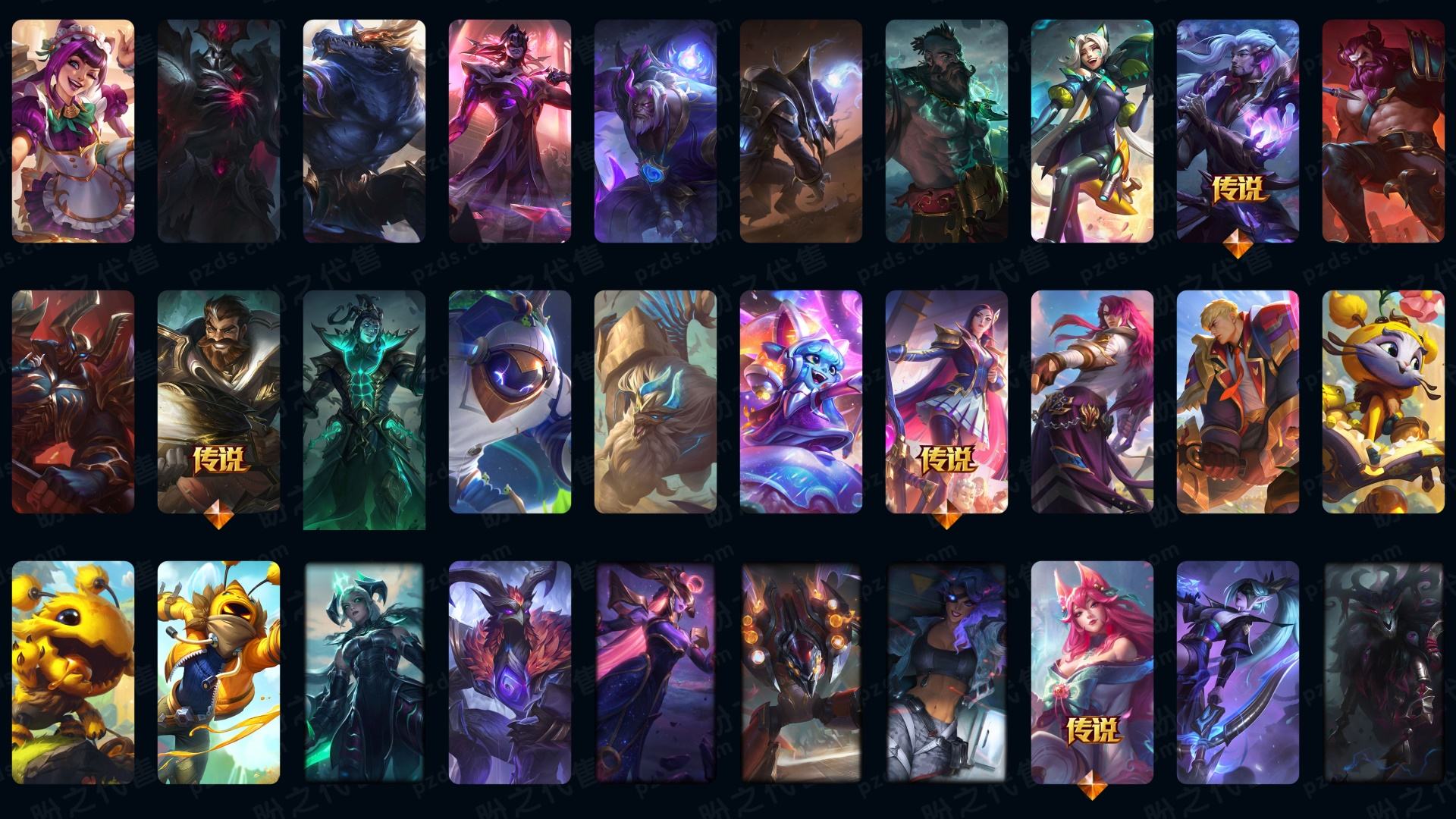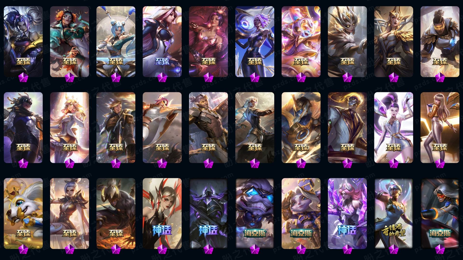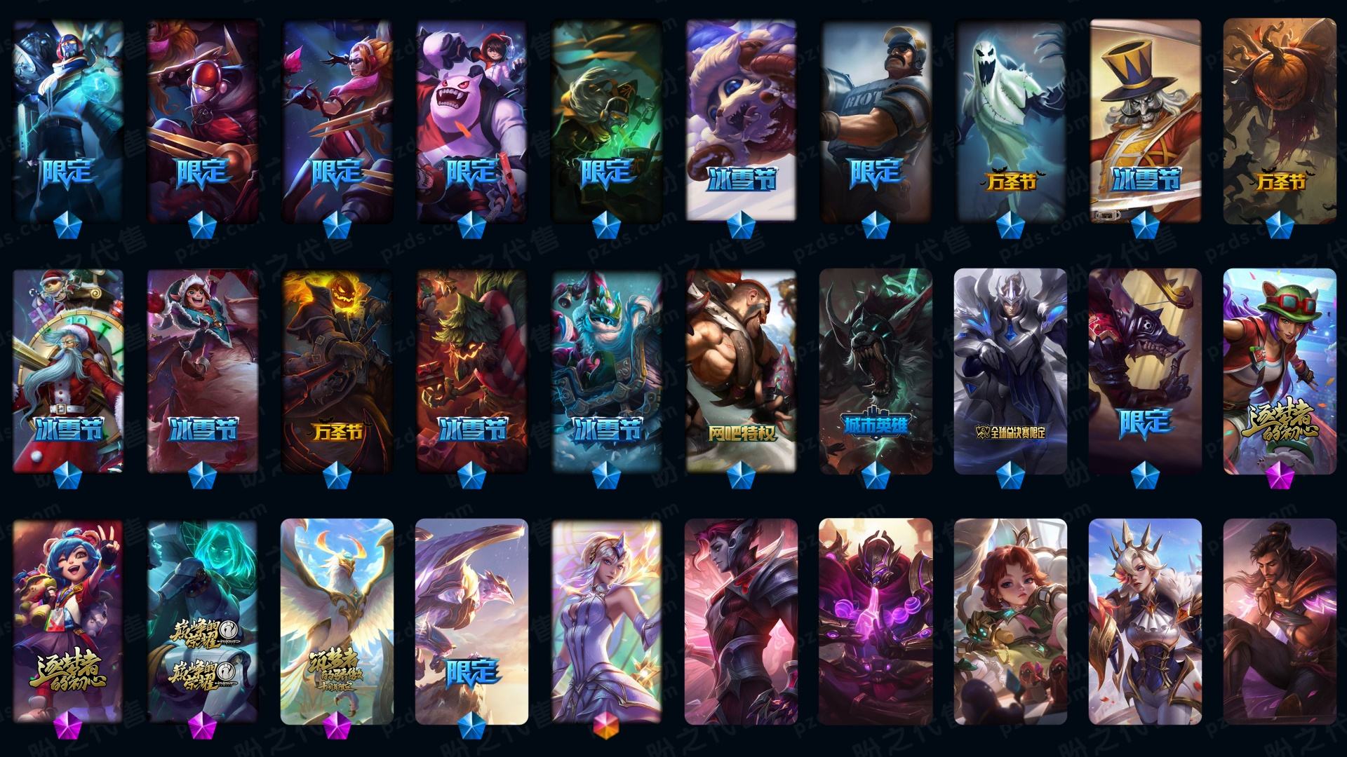 600p33神话☆灰烬派克-至臻kda卡莎-真伤塞纳等-牛年套-龙猴-泳池船长-7周年男刀刀妹-12周年劫-张辽加炫金-10周年霞-电玩周年等-详情看账号描述