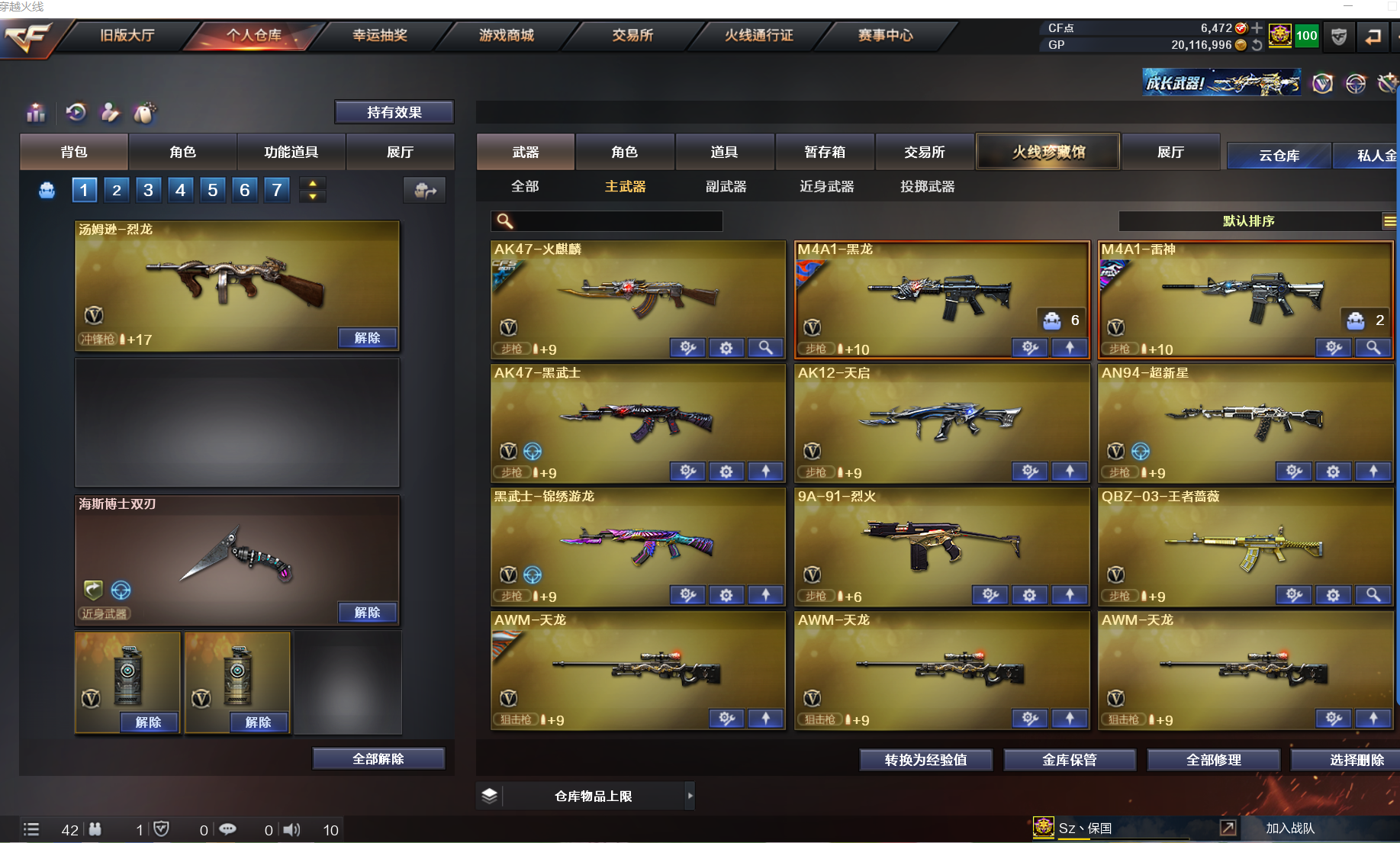 王者影豹王者蔷薇(已觉醒)|7烈龙死亡之眼53V9王者5炫金|金色蔷薇|云海玲珑|生化爆破全装号 东部战区合区大区(安徽一区、福建一区、上海一区、上海二区、浙江一区、浙江二区、江苏一区、江苏二区、教育大区、移动专区)登录的时候选择江苏一区。 【编号】:JSA401 【角 色】:王者影豹、云海玲珑、葵、瞳、樱、麻雀、幻影、堕天使、双蛇戒指、魔龙戒指、耀金纪念戒指 【主 武】:QBZ-03-王者蔷薇(已觉醒)、烈龙X7、金色蔷薇X2、王者之心、王者之翼、王者风神、王者之怒X2、炫金黑龙X2、炫金雷神、炫金毁灭、火麒麟、黑龙(能量核心)、雷神(白鲨 -CFPLS14冠军)、黑武士、天启、AN94超新星、黑武士-锦绣游龙、烈火、天龙X3(秘银)、毁灭(星空、耀金)、极光X2、裁决、死亡之眼X4 【副 武】:王者之魂、COP357雷霆、修罗-云海游龙、炫金修罗、修罗X4(耀金、CF STAR)、COP旗袍、COP遗迹、Coil1911大黄蜂、宇航兔兔、 【近 身】:王者之锋、尼泊尔雷霆、屠龙X4、龙啸X2、擎天、擎天-云海游龙、龙啸-烈火龙威、斩神刀、冰火魔兽、夺魂、凤凰之锋、黄金充气大锤、金砖、魔能飞环曼陀罗、 魔能镰刀X2、清刚 【投 掷】:雷霆套装X2、手雷-云海游龙、惨叫鸡高爆手雷、肥皂手雷、凤凰之息、深渊终结者手雷 【道 具】:战舰玩偶、胡司令玩偶、幸运猪猪玩偶、黄金幸运猪猪玩偶、蝴蝶玩偶、7个背包、AC(防弹衣+防弹头盔)、C4工具钳、步枪弹夹、手雷包;