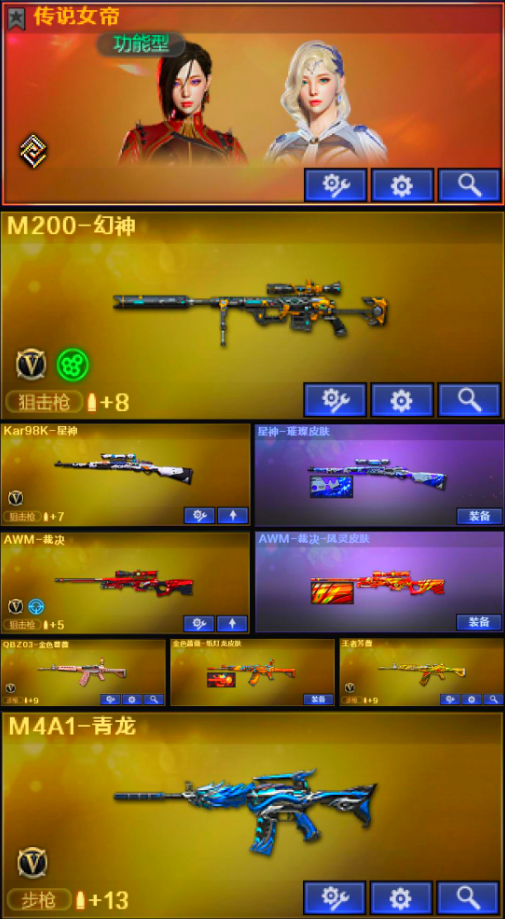 【南.部】天花板♥女帝幻神♥星神裁决带皮♥qbz带皮♥质量手枪隼蝴蝶刀♥玄武青龙♥满雷套;炽芒蝶刃,传说女帝,隼,RPK-盘龙,QBZ03-金色蔷薇,M200-幻神,Kar98K-星神,