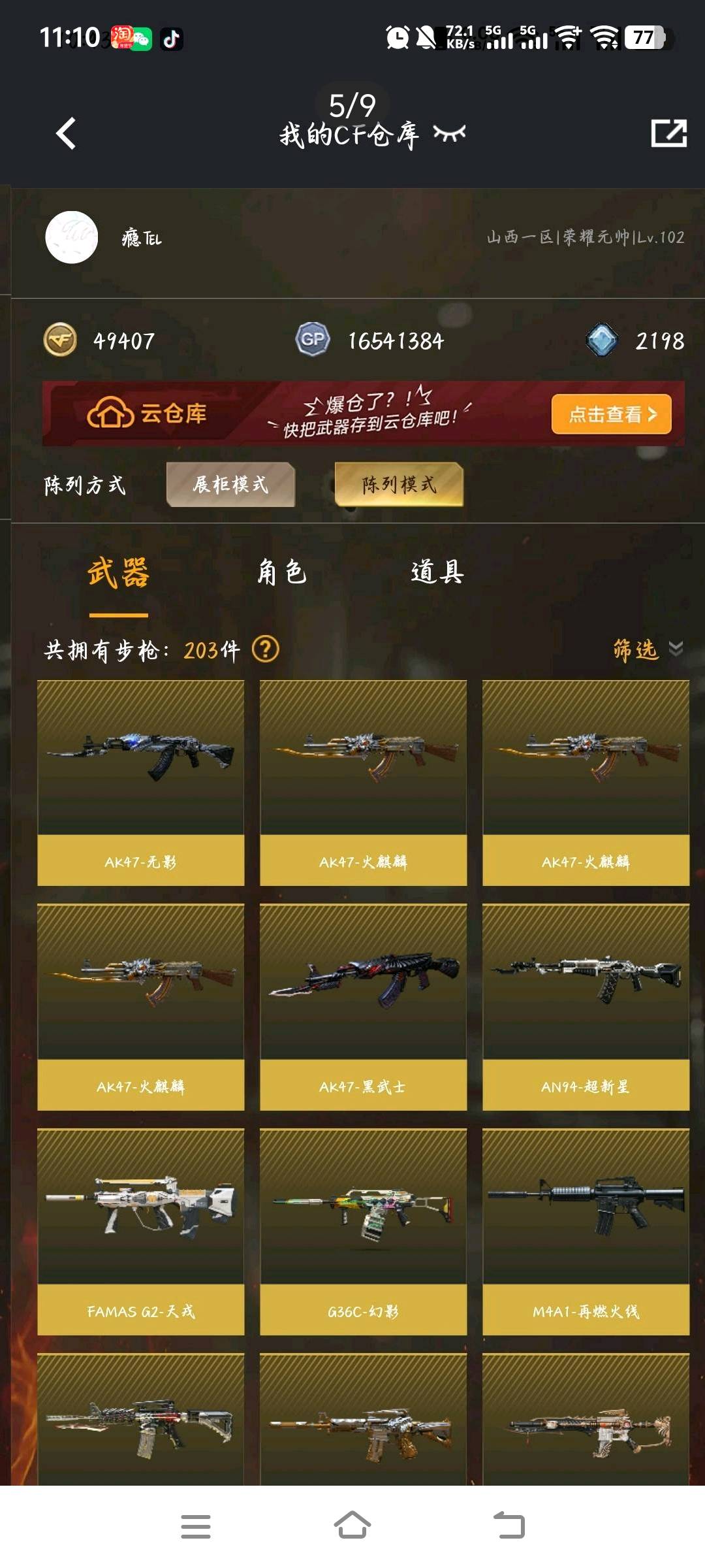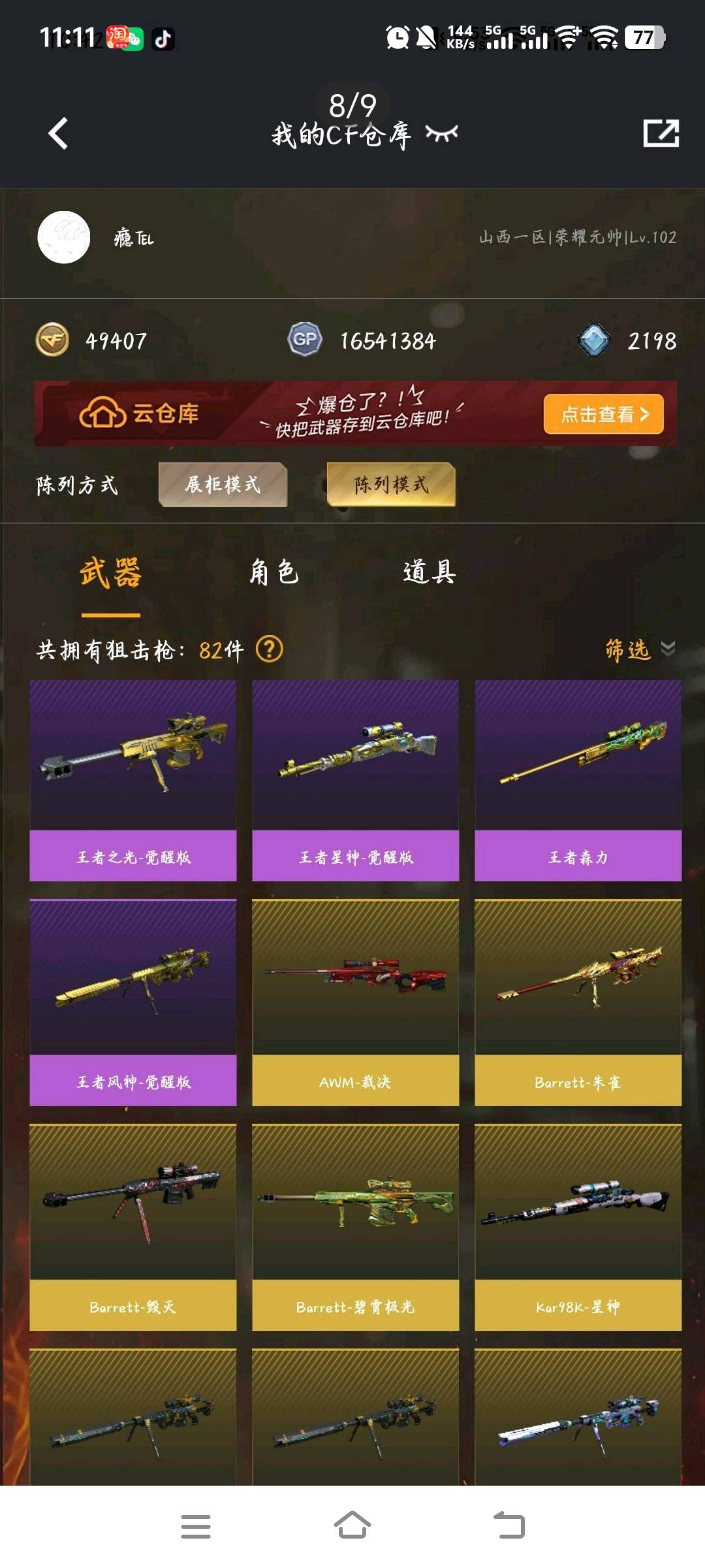 氪金3万+,开挂必报警起诉,北部山西一区-125V(幻神带皮肤加音效卡-星神98k-金色蔷薇qbz-白虎带枪皮加音效卡-裁决带枪皮加音效卡-炽芒碟刃-G36C幻影);