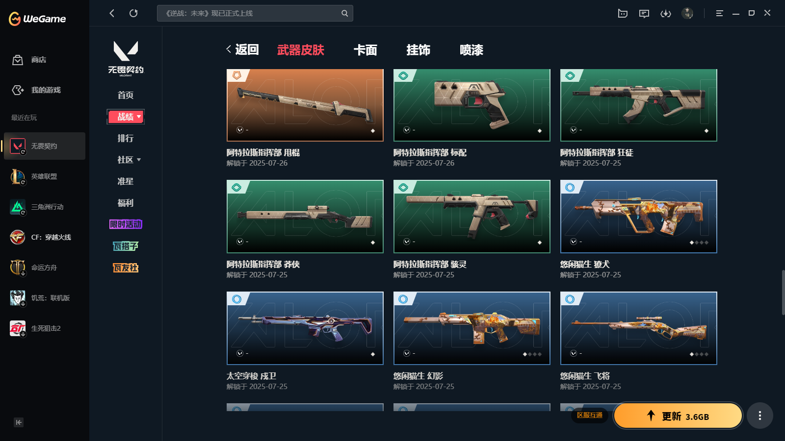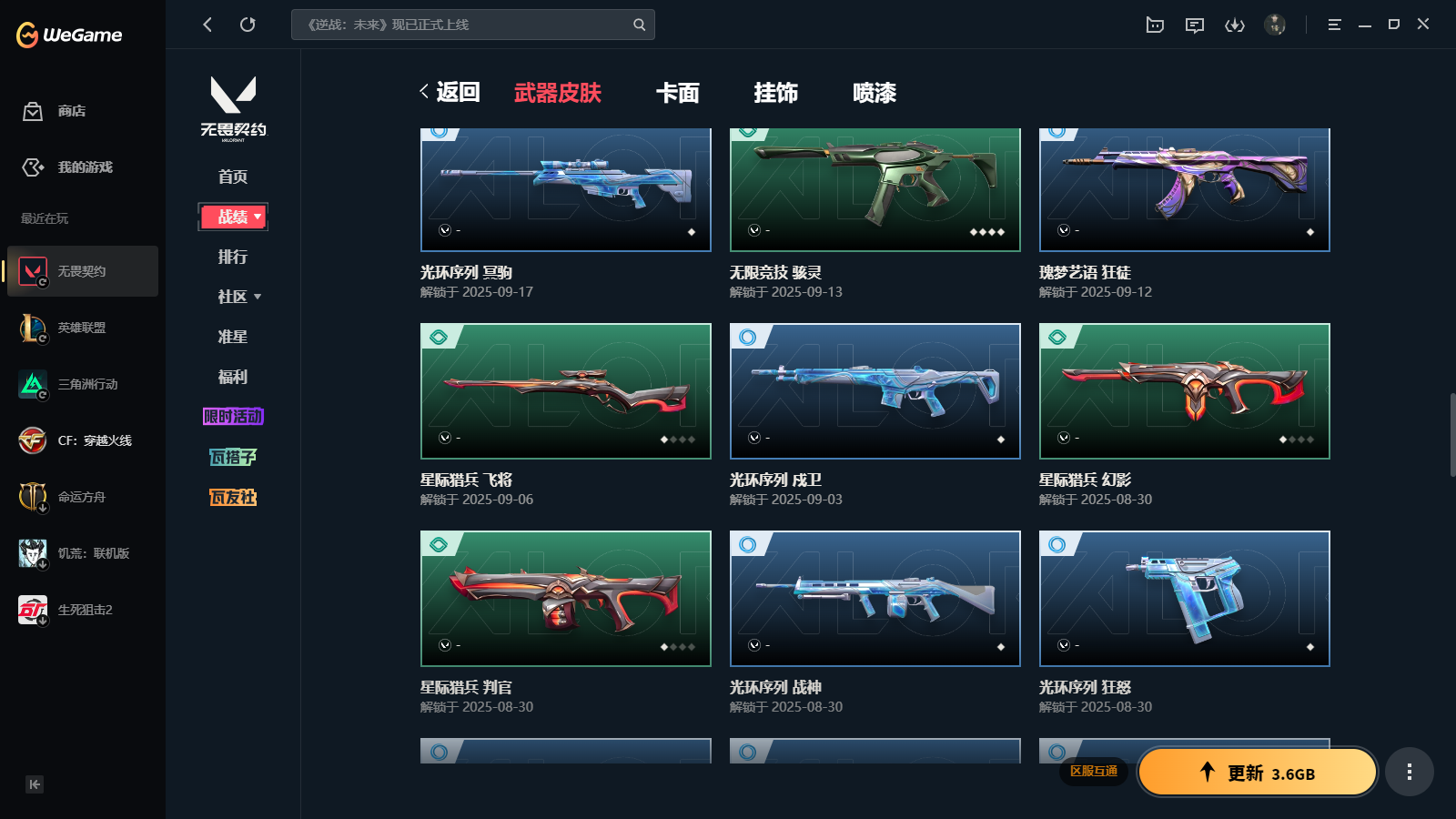 wegame无畏契约★(光荣异象套装/RGX-11z-Pro套装/2025全球冠军赛套装/奇幻朋克3.0套装)无畏契约/等级85/段位未定级