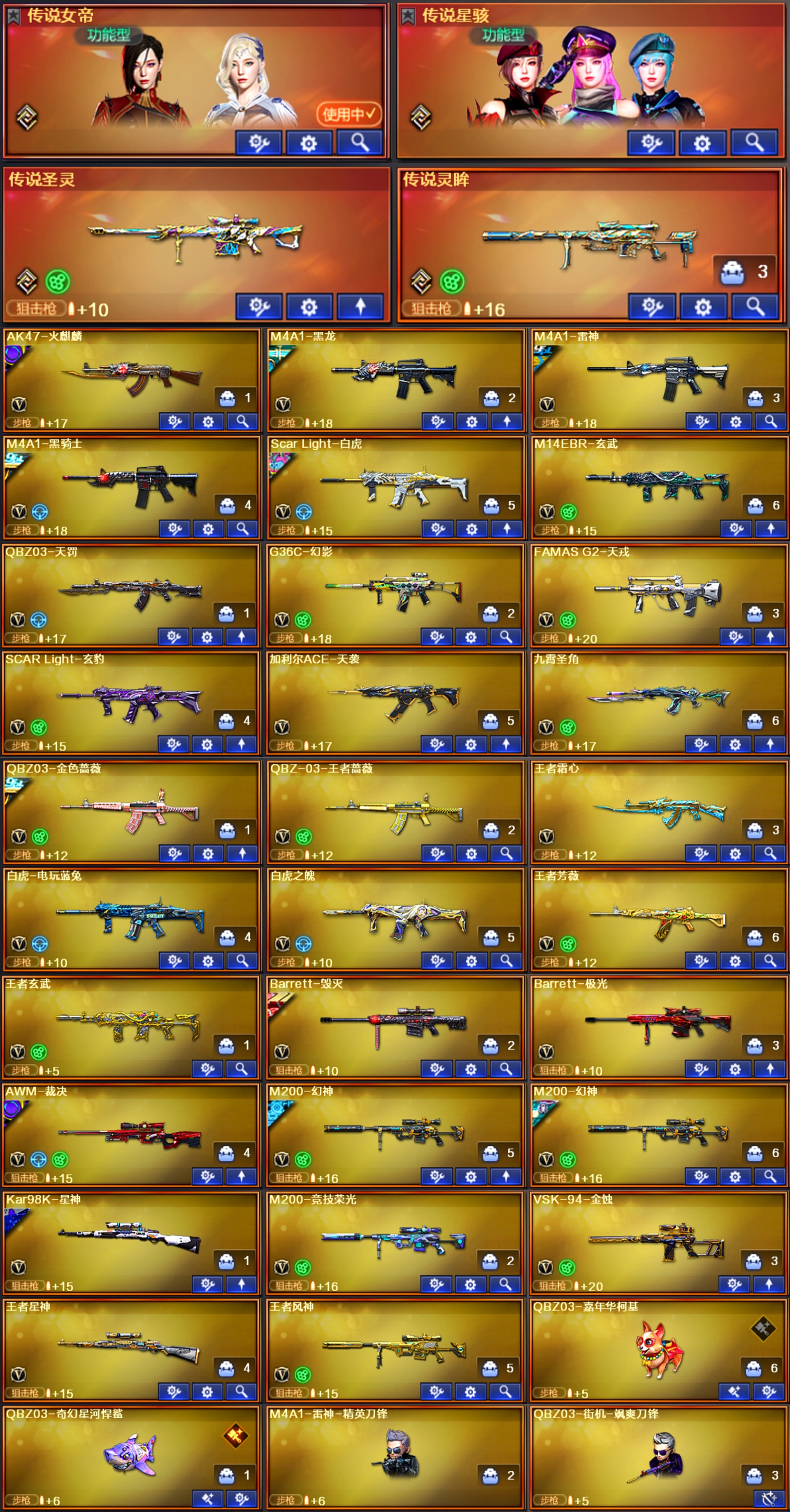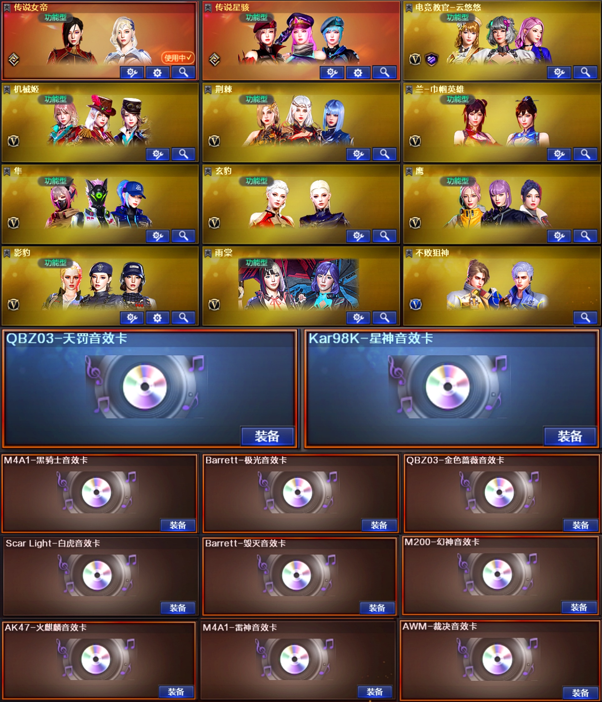 传说女帝星骇灵眸加利尔天戎幻影♥幻神音效卡9皮光海夜阑♥裁决音效卡5皮巅峰♥QBZ5皮悍鲨柯基♥8副