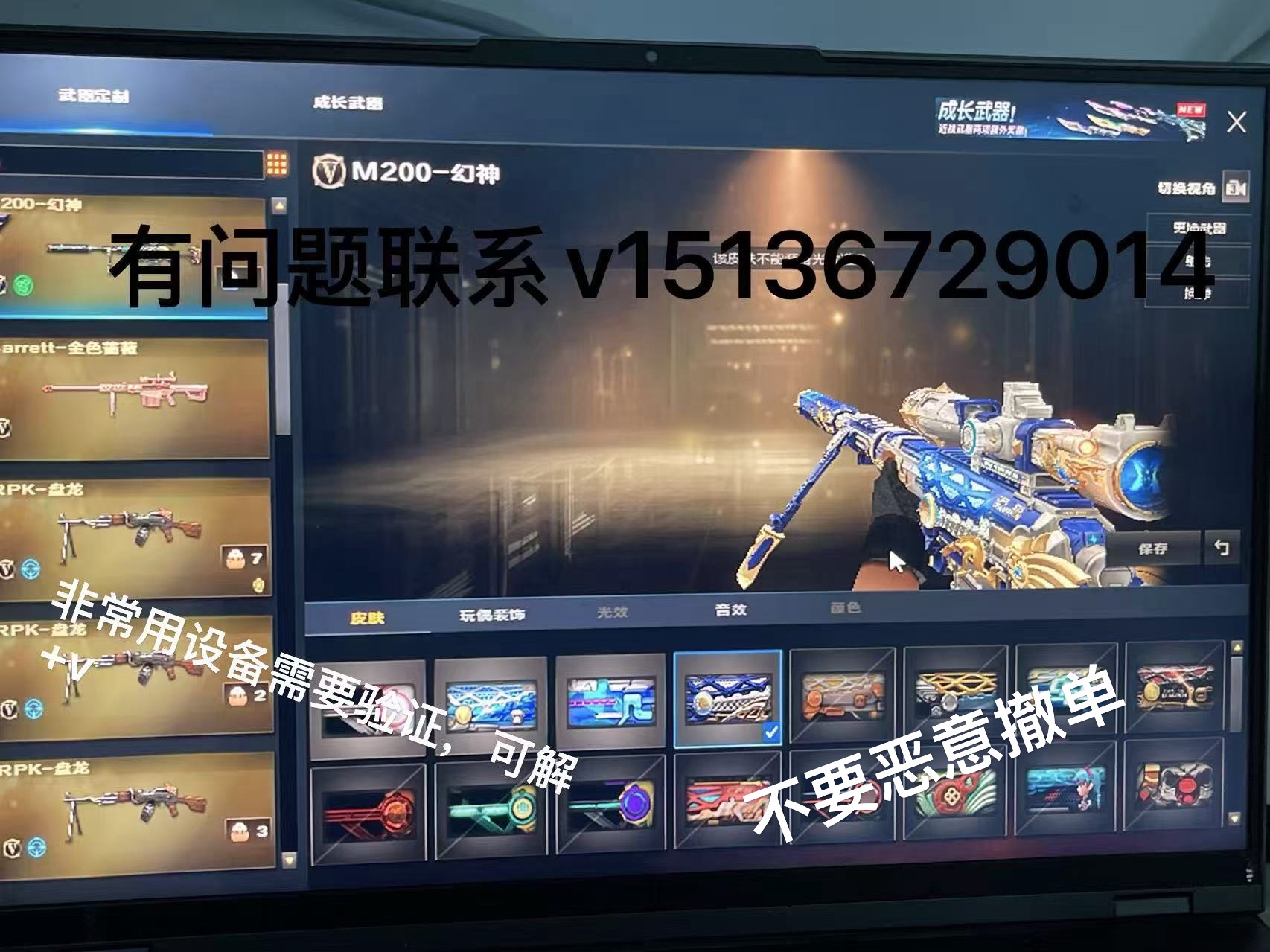 幻神4皮/新出kz、ep、电竞之星、宠儿/裁决六皮肤/新出过载、叶芒苍灵/毁灭10皮肤带卡/sv,cfs,绿豆等等/八主流副武器/5usp,3usp雷暴,1雷暴王者1usp冥王,2白鲨科尔特,1雷霆cop。后续会补裁决音效卡,各位老板喜欢请收藏,跪求;USP-雷暴,USP-雷暴王者,柯尔特-荣耀世冠白鲨2023,炽芒蝶刃,RPK-盘龙,QBZ03-金色蔷薇,M200-幻神,