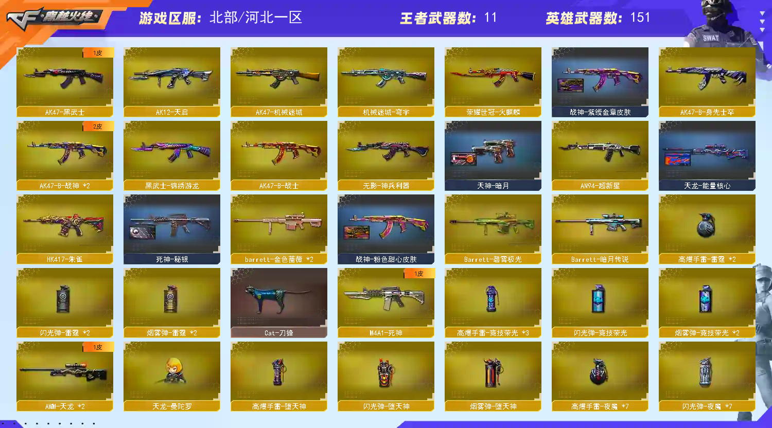 首页 > 租号大厅 > 穿越火线 > 网通区/河北一区 > 【北.部】天花板♥星骇幻神三件套♥星神三件套♥裁决三件套♥白虎qbz冠军三件套♥满质量手枪幻影生化全