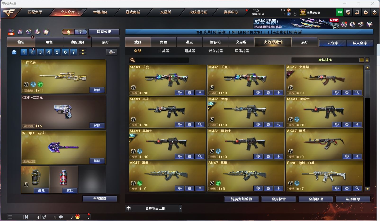 【m200幻神】【m200竞技荣光+usp雷暴 】【6盘龙 5炼狱 6烈龙 异变清道夫 斯太尔蝴蝶 隼】【scar白虎】【qbz金色蔷薇】【火麒麟+冠军之心】【黑龙】【雷神+卡+荣耀之魄+冠军之魄】【黑骑士+卡+冠军之势 】【毁灭+卡+枪娘+冠军之怒 】【极光+卡】【裁决 】【雷暴套】【武器:雷暴 王者之心 王者之影 王者之武 王者之势 王者之幻 海王】【3手枪:修罗 天神 雷暴 】【5刀具:屠龙*3 麒麟刺 斩神刀雷暴 】【7雷套:雷暴雷*7】【小人枪:雷神精英刀锋 火麒麟灵狐 】【音效卡:毁灭音效卡 极光音效卡 雷神音效卡 黑骑士音效卡 】【四防角色:王者零国色天香 职业经理 】;USP-雷暴,隼,RPK-盘龙,QBZ03-金色蔷薇,M200-幻神,Scar Light-白虎,