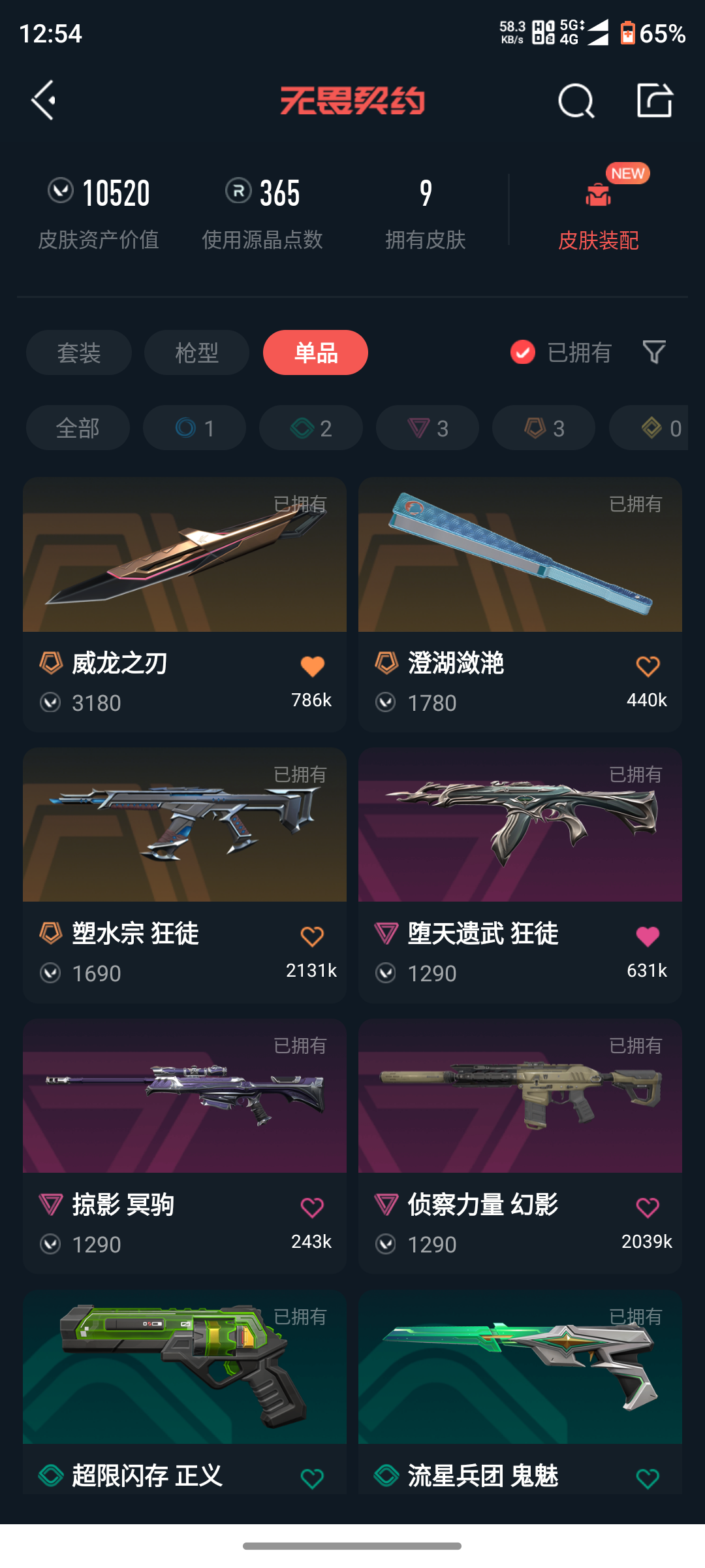 • 皮肤资产价值: 10520