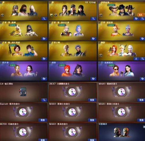 【王者武器】:【王者之圣-1,炫金黑龙-1,炫金雷神-3,炫金毁灭-1,王者之翼-2,王者之武-1,王者之心-1,王者之魄-2,王者之怒-4,王者之灵-1,王者之刺-1,超新星-悦享-1,王者之魄高爆手雷-2,高爆手雷-雷霆王者-2,王者之魄闪光弹-3,王者之魄烟雾弹-1,Barrett-雷霆王者-1,COP 357-雷霆王者-觉醒版-2,M4A1-雷霆王者-觉醒版-1,烟雾弹-雷霆王者-觉醒版-2,王者之击-觉醒版-1,王者之势-觉醒版-1,王者之啸-觉醒版-1,王者之心-觉醒版-1,王者之锋-觉醒版-1,王者之魄-觉醒版-1,王者之城-1,闪光弹-雷霆王者-觉醒版-2,雷霆王者之锋-觉醒版-1,炫金骑士-3,炫金天神-1】 【英雄武器】:【M4A1-死神-1,AK12-天启-1,M4A1-武圣-1,M4A1-千变-1,M4A1-黑骑士-2,M4A1-玫瑰精灵-1,屠龙-4,龙啸-1,AK47-无影-4,麒麟刺-1,AK47-火麒麟-3,AWM-天龙-6,Barrett-毁灭-2,汤姆逊-烈龙-6,Barrett-极光-2,RPK-盘龙-6,沙鹰-修罗-8,加特林-炼狱-4,沙鹰-天神-5,Glock18-武圣-1,M4A1-雷神-5,M4A1-黑龙-3,9A91-烈火-5,M200-幻神-1,USP-雷暴-1,高爆手雷-雷暴-4,闪光弹-雷暴-4,烟雾弹-雷暴-4,斩神刀-雷暴-1,Barrett-电竞装甲-1,尼泊尔-电竞装甲-1,恶棍-电竞装甲-7,擎天-竞技荣光-1,机械迷城-穹宇-1,柯尔特-电竞装甲-1,烟雾弹-电竞装甲-7,闪光弹-电竞装甲-7,M4A1-夜魔-2,无影-神兵利器-1,AA-12-雷霆-2,Barrett-暗月传说-1,QBZ03-金色蔷薇-1,M4A1-仙界-黑骑士-1,M4A1-英雄-能量核心-1,HK417-朱雀-1,M4A1-雷神-精英刀锋-1,M4A1-十二生肖·龙-雷神-1,Kar98K-星神-1,黑武士-锦绣游龙-1,擎天-1,AWM-裁决-1,M4A1-青龙-1,AK47-雷暴-1,AK47-B-常胜将军-1,AK47-B-身先士卒-1,荣耀世冠-柯尔特-1,荣耀世冠-火麒麟-1,荣耀世冠-雷神-1,荣耀世冠-龙啸-1,AK47-B-战神-1,AK47-B-战士-2】 【装饰品】:【黑龙-暗月-1,毁灭-暗月-1,天神-暗月-1,雷神-能量核心-1,天龙-能量核心-1,黑龙-能量核心-1,AWM-天龙-传奇白鲨-1,雷神-炽焰魔龙-1,雷神-烈虎皮肤-1,暴躁猪猪玩偶-1,毁灭-冠军之怒-1,雷神-宠儿-2019MVP-1,M4A1-雷神-CFS 2019-1,M4A1-千变-孔明皮肤-1,火麒麟-平天大圣-1,火麒麟-心动糖果-1,火麒麟-轻羽皮肤-1,黑骑士耀金皮肤-1,无影耀金皮肤-1,雷神-星空-1,关羽玩偶-1,雷神-耀金皮肤-1,战神-流金岁月皮肤-1,战神-紫绶金章皮肤-1,AK47-B-常胜将军-孙权-1,雷神-荣耀之魄-1,毁灭耀金皮肤-1,幻神-冠军之幻-1,毁灭-BEAN-2020MVP-1,无影-霓裳皮肤-1,黑骑士-地狱火-1,蝴蝶玩偶-1,孙尚香玩偶-1】 【角色】:【魅影,王者之瞳,葵,堕天使,复仇者,幻影,雷霆-β,雷豹,铁骑,灵狐者,夏日之兰,零-水下丽影,兰-海滩派对,王者-迷迭香,王者-瞳-闭月羞花,圣诞潘多拉-X,影武者-X,风暴女,陈龙野-Y,潘多拉-甜心教官,虎妞,樱-缤纷夏日,炽天使,王者-葵-貂蝉,王者-零-国色天香,雪莉杨,沙漠玫瑰,职业选手,幽】 【道具】:【炫彩背包-1,金蛇戒-1,银蛇戒-1,烟雾保护头盔-1,闪光护目镜-1,夺命之镰-1,变异宝贝-1,灵魂忍者-1,疯狂宝贝-1,迷雾幽灵-1,生化弹匣-1,步枪弹匣-1,机枪弹匣-1,冲锋枪弹匣-1,手枪弹匣-1,Barrett-毁灭音效卡-1,M4A1-雷神音效卡-1,AK47-火麒麟音效卡-1,M200-幻神音效卡-1,M4A1-黑龙音效卡-1,绿色巨人-1,兔子发带-1,大圣头盔-1】 【幻神武器】:【M200-幻神-1】;USP-雷暴,荣耀世冠-柯尔特,沙漠玫瑰,RPK-盘龙,QBZ03-金色蔷薇,M200-幻神,Kar98K-星神,