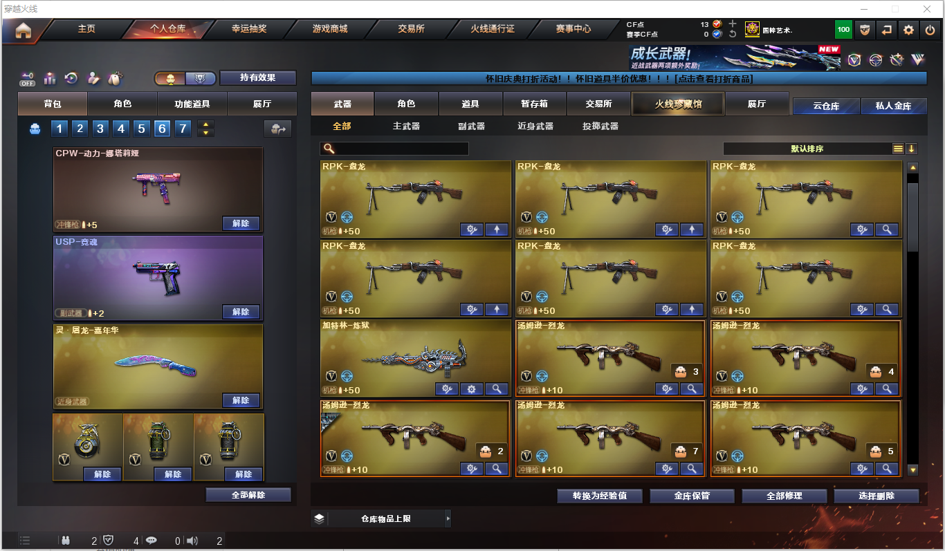 【6烈龙+蝴蝶/8盘龙】【M200-幻神,死亡之眼】95V QBZ03-金色蔷薇,HK417-朱雀,M4A1-黑骑士*2,加特林-炼狱,斯泰尔-蝴蝶