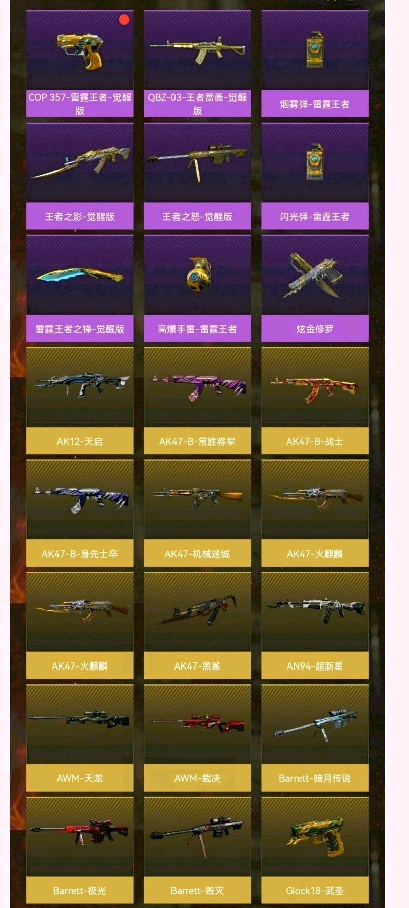 M200幻神❤斯泰尔蝴蝶❤qbz金色蔷薇❤白虎电玩蓝兔❤朱雀❤4烈龙炼狱❤竞技荣光套❤武圣