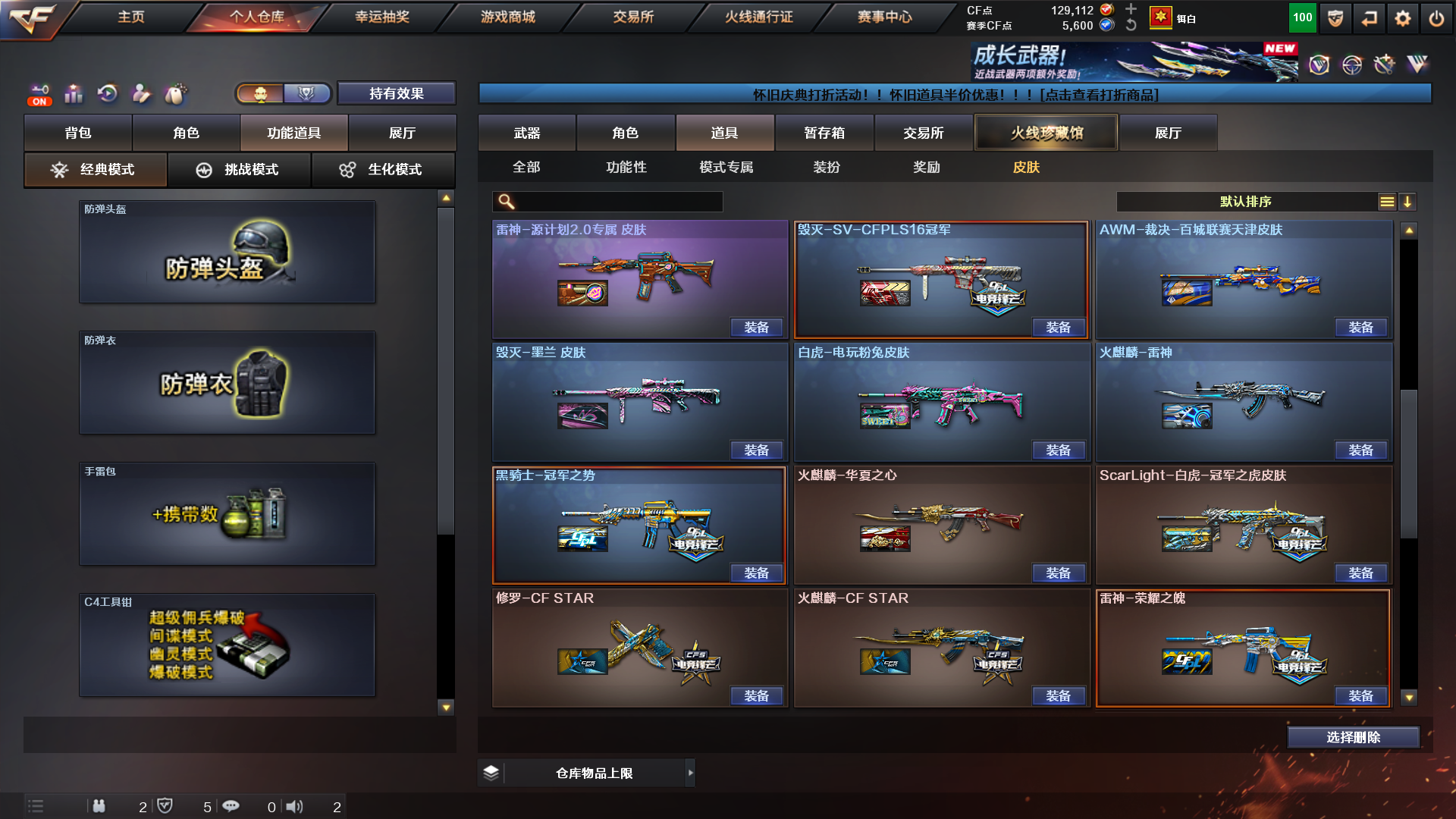 热门全装号 热门主武:幻神 星神 裁决 x3毁灭 QBZ03-金色蔷薇 x2Scar Light-白虎 G36C-幻影 加利尔ACE-天袭 x2M4A1-雷神 QBZ-03-王者蔷薇-觉醒版 M200-竞技荣光 QBZ03-天罚 QBZ191-零号 机械迷城-穹宇 HK417-朱雀 黑武士-锦绣游龙 无影-神兵利器 Barrett-碧霄极光 barrett-金色蔷薇 死亡之眼 HK417-朱雀-电竞之星 AK47-火麒麟 热门副武:x2MAC-10-幻能朋克 x3柯尔特-荣耀世冠EP x1柯尔特-荣耀世冠白鲨2023 x1柯尔特-竞技荣光 x1柯尔特-萌杀 x1USP-雷暴 x2USP-雷暴王者 x2沙鹰-天神 x1Anaconda-恶棍 x1天神-动感闪耀 热门近战:炽芒蝶刃 x2迷你牛牛 猫猫手套 x3冰火魔兽 屠龙-电竞之星 热门手雷:x1竞技荣光套 x1玄豹套 热门皮肤音效:幻神:星火小队签名臻藏版 AG-CFPL S24冠军 电竞之星 AG-CFPLS17冠军 荣耀世冠白鲨2023 热门皮肤音效:裁决:巅峰荣耀 百城联赛天津 热门皮肤音效:QBZ金色蔷薇:荣耀世冠EP 拼搏 热门皮肤音效:白虎:AG-CFPLS20冠军 冠军之虎 热门皮肤音效:雷神:拼搏 宠儿-2019MVP 荣耀之魄 热门皮肤音效:毁灭:Heartshot 墨兰 热门皮肤音效:黑骑士:AG-S4冠军典藏 冠军之势 热门皮肤音效:火麒麟:冠军之心 华夏之心 Heartshot 热门音效卡:qbz天罚音效卡 白虎盛典舞曲音效卡 屠龙电竞之星跃动音效卡 死神一雪域霜狐一怀旧音效卡 HK417-朱雀-电竞之星-竞星跃动音效卡 AN94-竞魂超新星-音效 炼狱-百战金芒-庆典舞曲音效卡 Barrett一碧霄极光音效卡 极品角色:电竞教官-云悠悠 幻面灵狐 雪域霜狐 战地猎狐 葵-阿尔法武装 鹰 关小雨;USP-雷暴,USP-雷暴王者,柯尔特-荣耀世冠白鲨2023,电竞教官-云悠悠,QBZ03-金色蔷薇,G36C-幻影,M200-幻神,