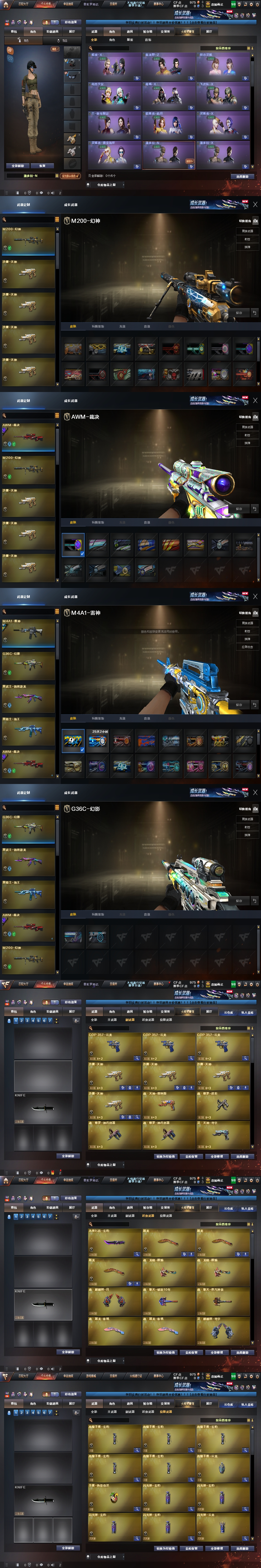 老板!玩的开心;炽芒蝶刃,G36C-幻影,M200-幻神,Scar Light-白虎,加利尔ACE-天袭,Kar98K-星神,