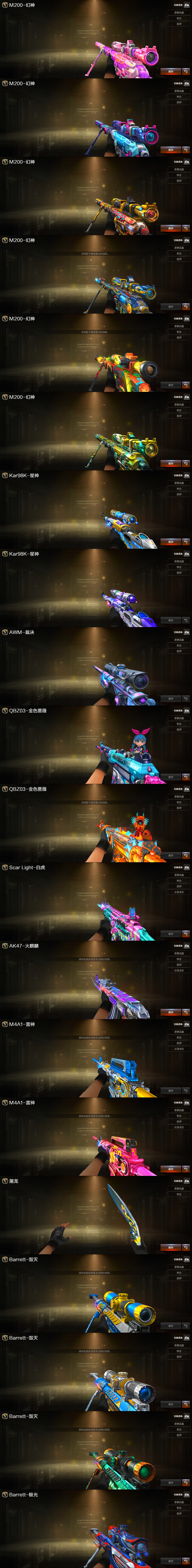 金名-生化隼满级八面炼狱泡泡象5烈蝴蝶/传说灵眸/双雷暴8副手/幻神三件套6皮/星神冠军/裁决三件套