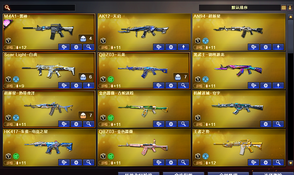 都有,不要瞎搞就行;炽芒蝶刃,电竞教官-云悠悠,QBZ03-金色蔷薇,Scar Light-白虎,Kar98K-星神,