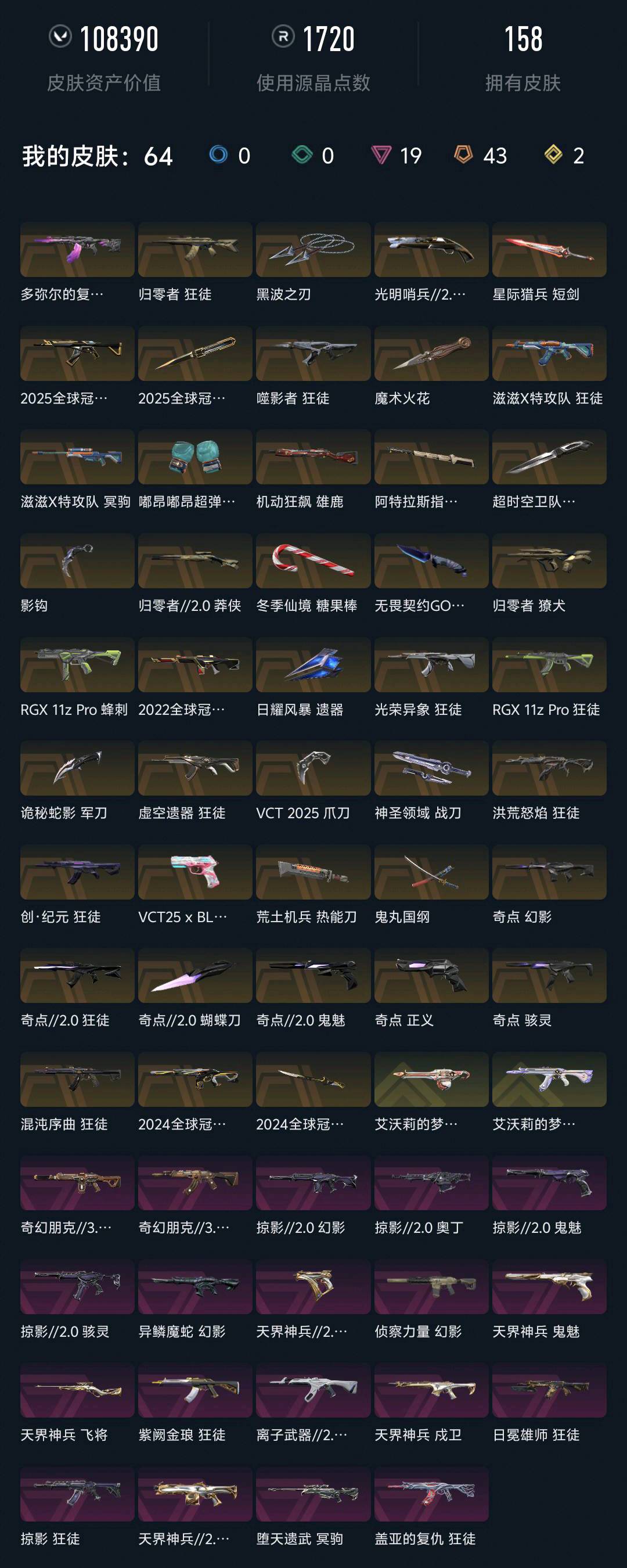 1;艾沃莉的梦之翼 奥丁,黑波之刃,VCT 2025 爪刀,归零者 獠犬,盖亚的复仇 狂徒,虚空遗器 狂徒,洪荒怒焰 狂徒,
