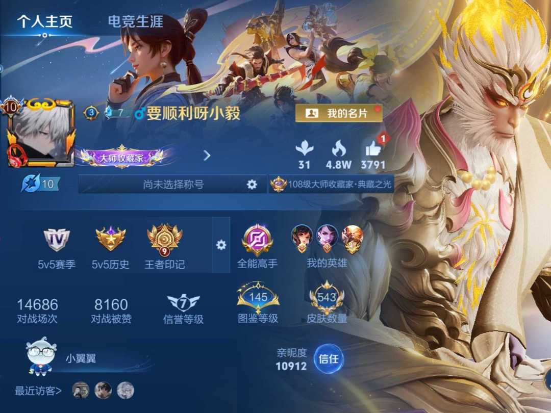 扫码登录❁包天/周划算❁V10❁590+皮肤❁孙悟空无双无相❁青铜小兵皮❁伽罗典藏❁19颗荣耀水晶❁蛇年3套❁年限34套❁3无双❁限定一堆❁手Q212区❁已禁言