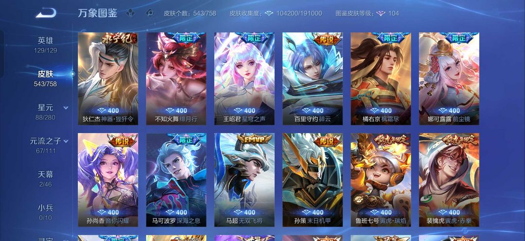 v10、524皮5水4无双、遇见神鼓、齐天大圣、白虎志、韩信荣耀典藏、72传说、愿照·九州拓、时之魔女、瑶无双、青丘、九尾、神器明辉仪