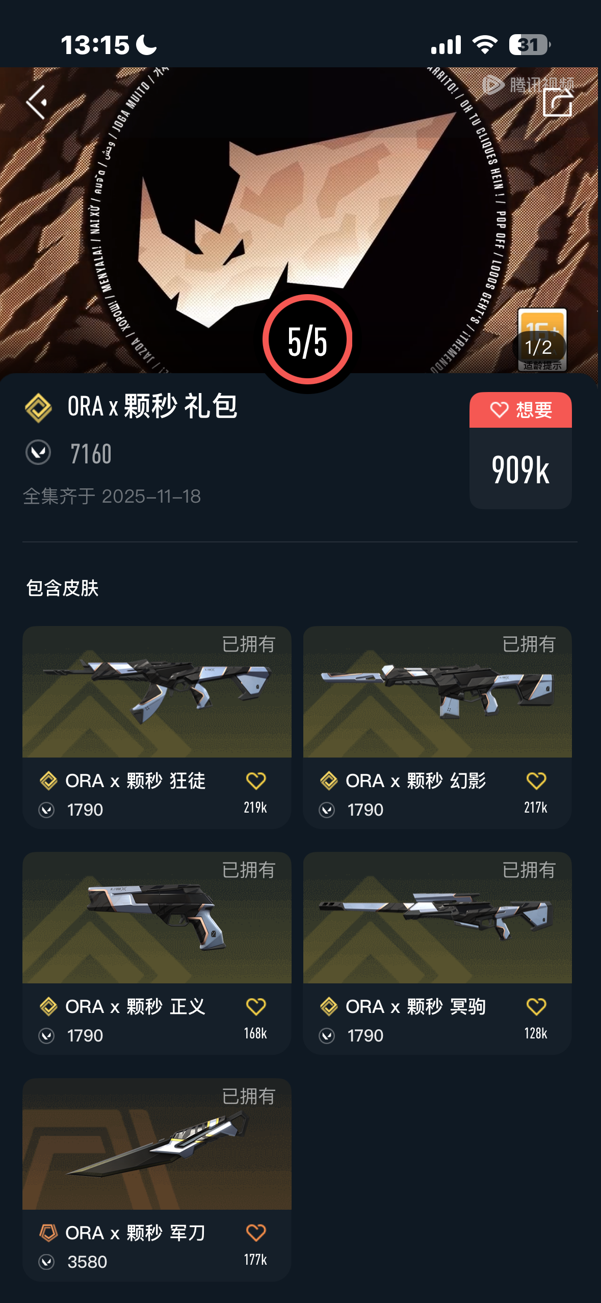 • 游戏区服:无畏契约-wegame / wegame / wegame