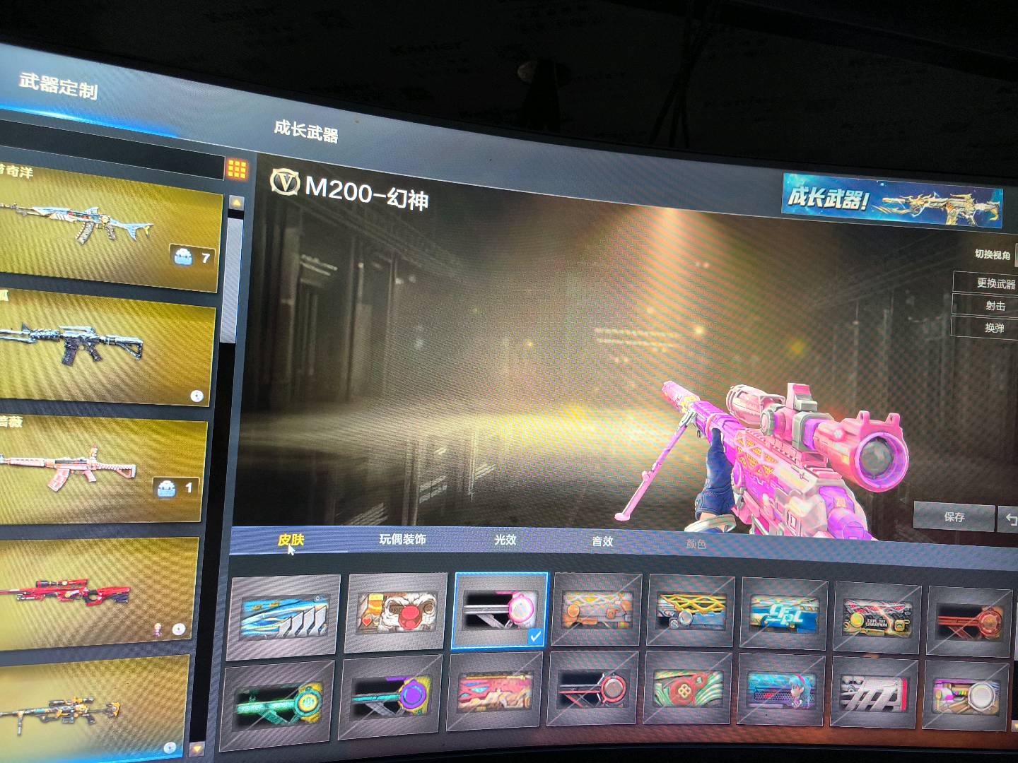爆破生化都能玩;USP-雷暴,柯尔特-冠军之特,炽芒蝶刃,传说影煞,QBZ03-金色蔷薇,G36C-幻影,M200-幻神,