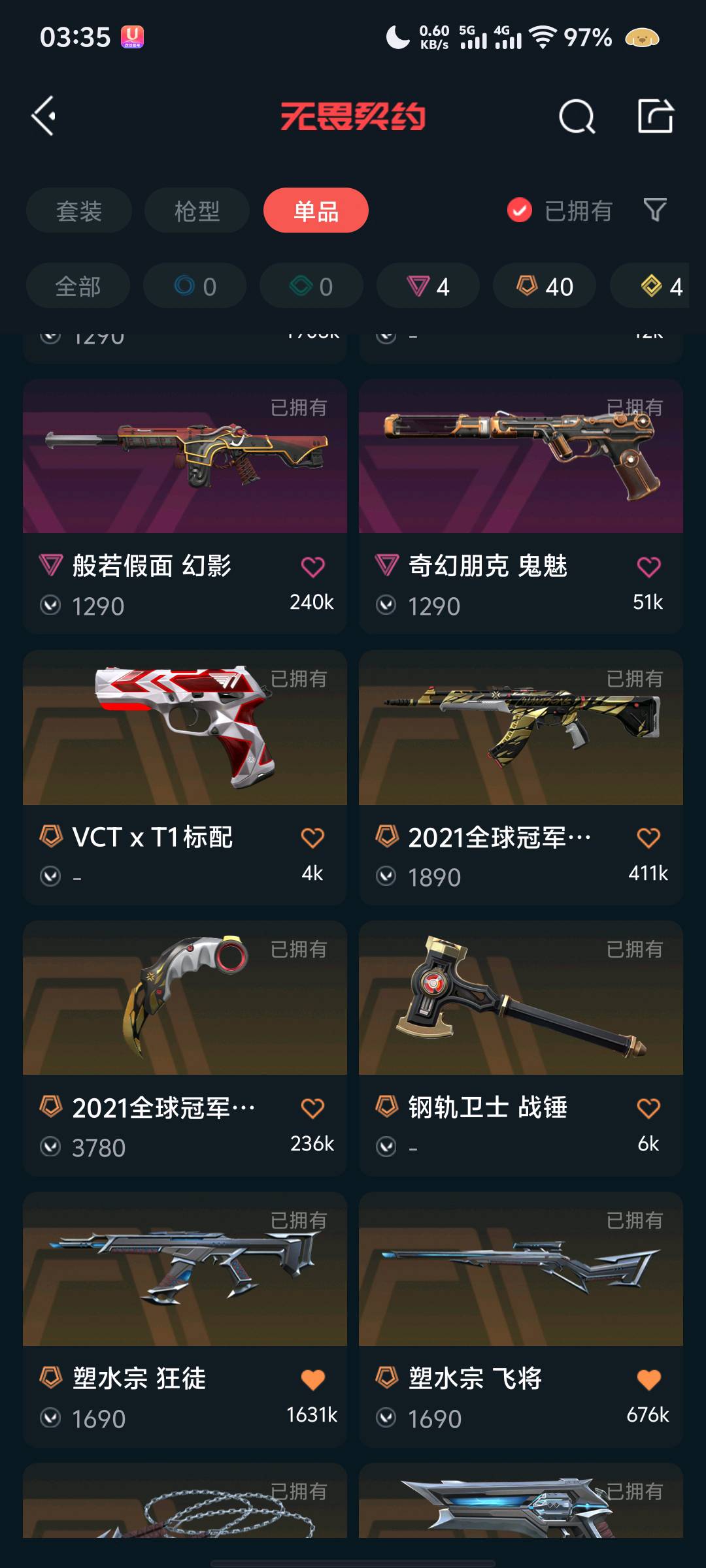 • 皮肤资产价值: 79520