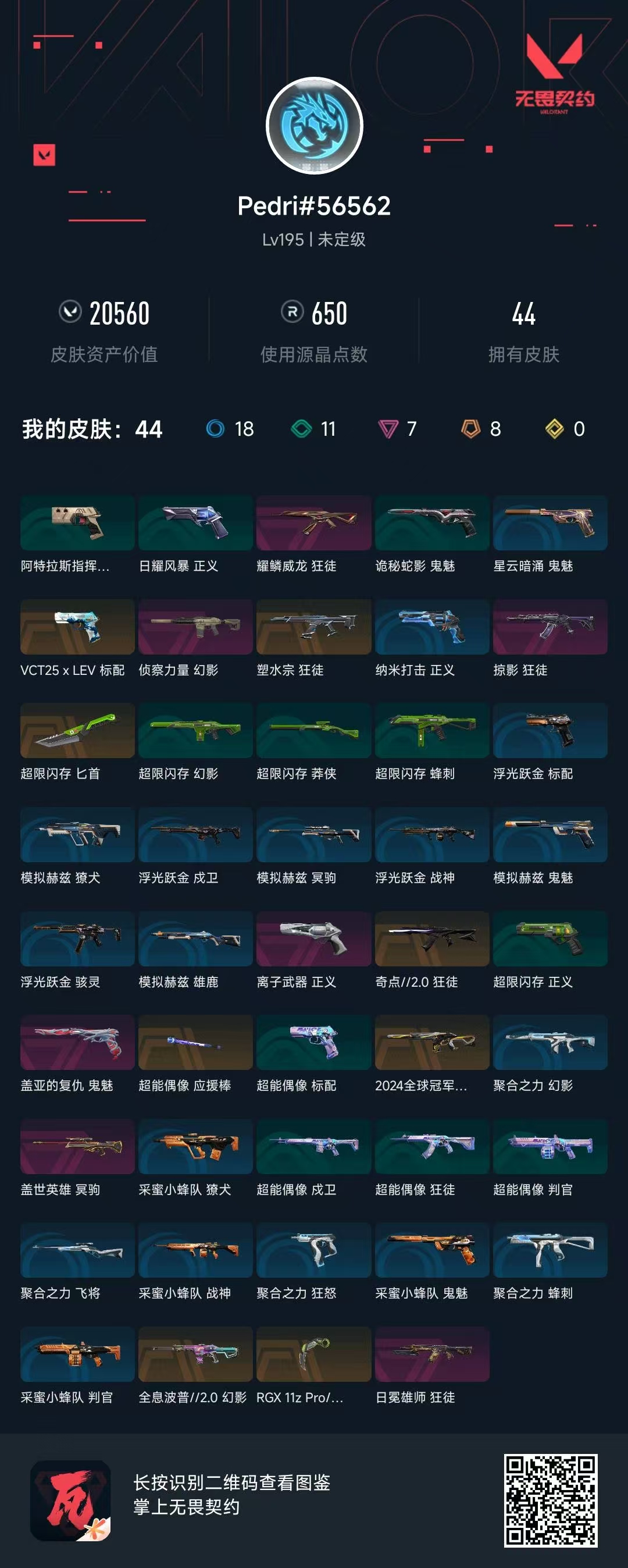 可排位 英雄28 武器皮肤数量44;掠影 狂徒,侦察力量 幻影,塑水宗 狂徒,2024全球冠军赛 幻影,离子武器 正义,