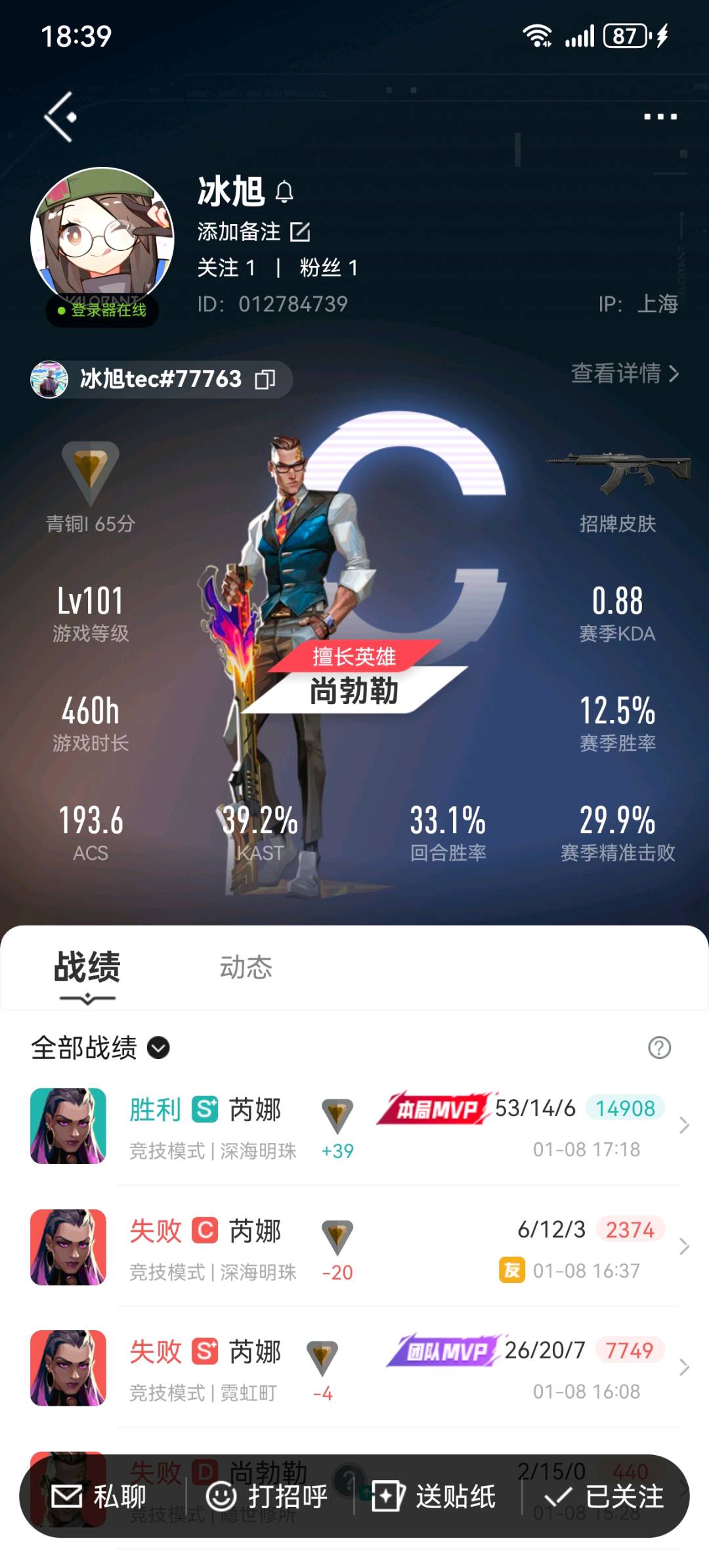 • 游戏区服:无畏契约-wegame / wegame / wegame
