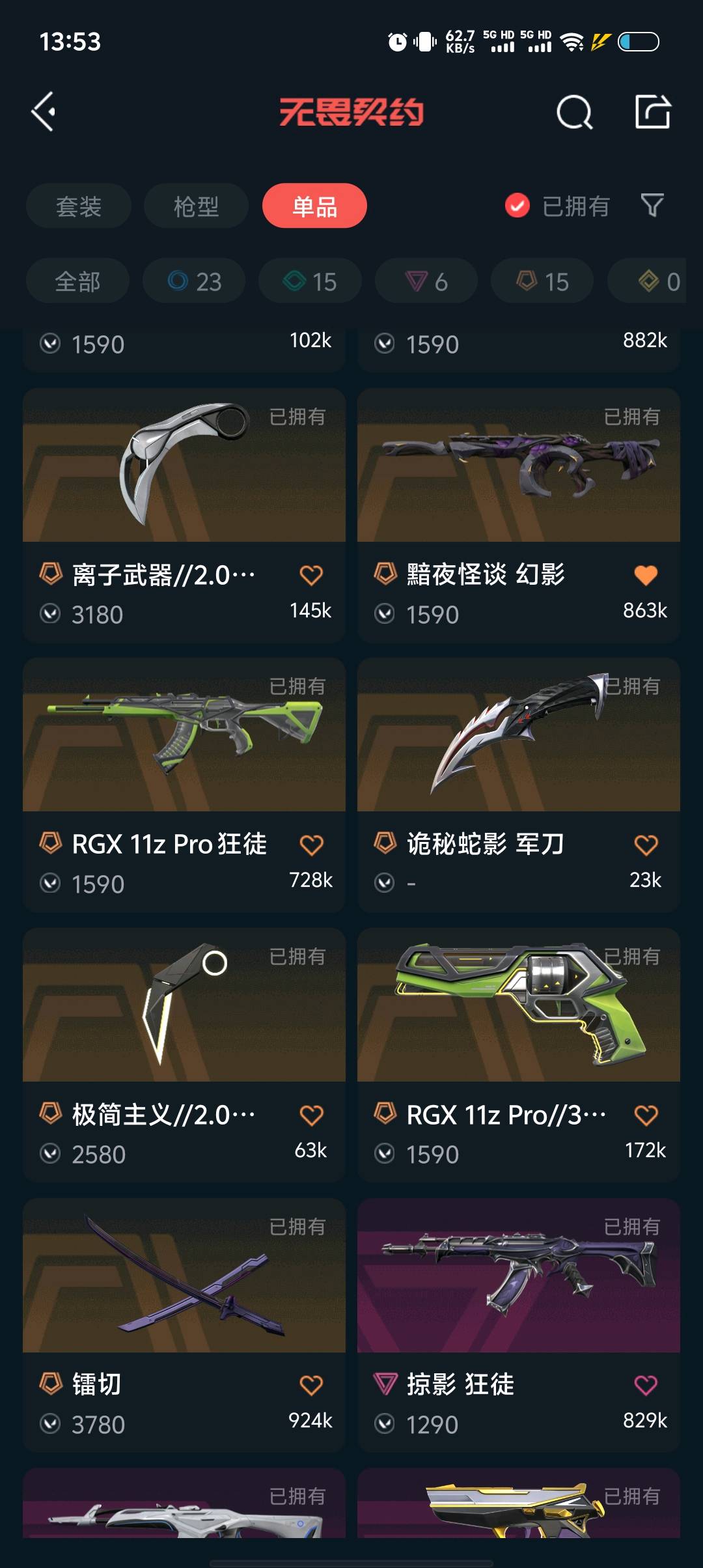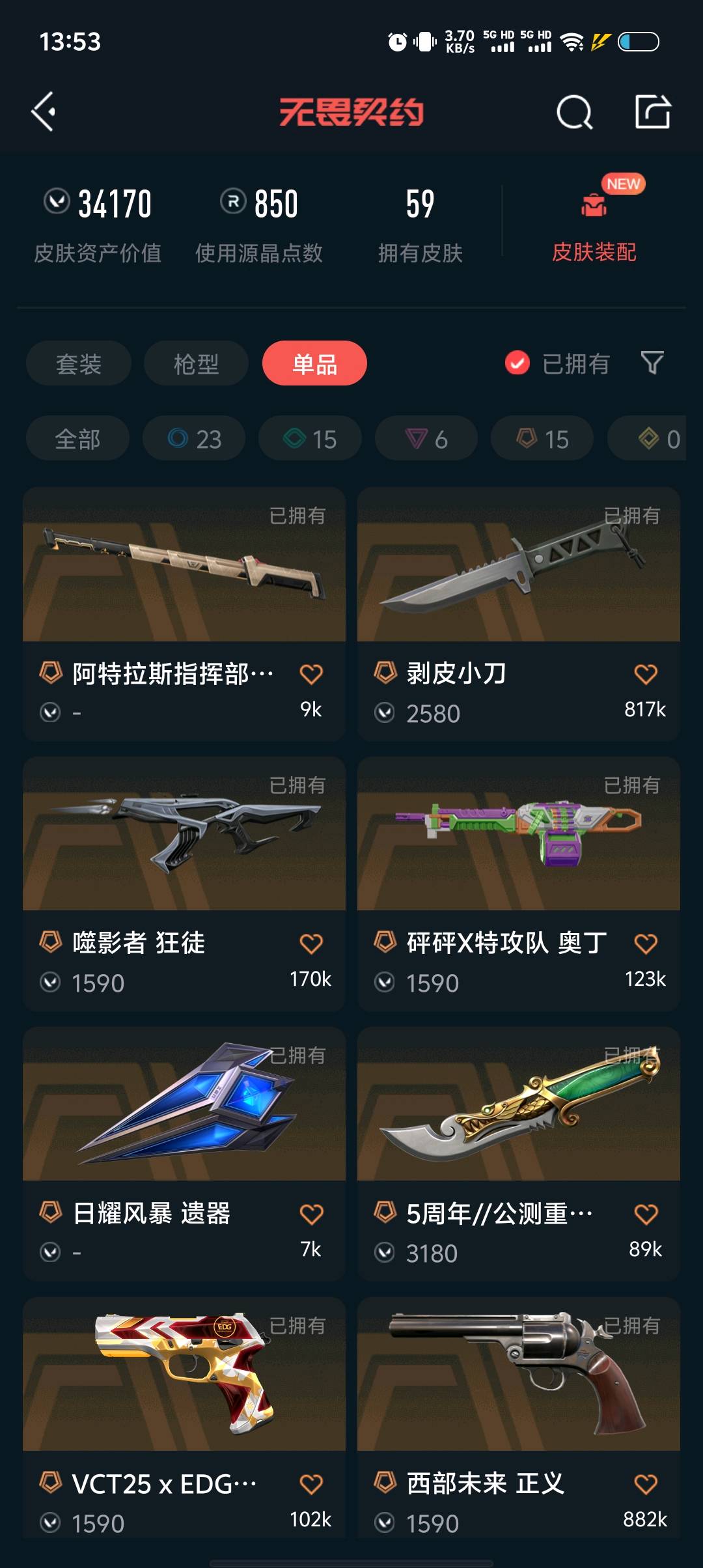 英雄28 武器皮肤数量59;砰砰X特攻队 奥丁,5周年//公测重制版 苍龙之刃,剥皮小刀,镭切,噬影者 狂徒,掠影 狂徒,RGX 11z Pro 狂徒,