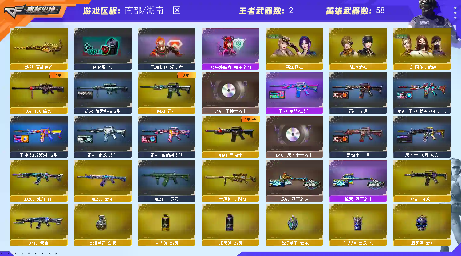 • 游戏区服:穿越火线 / 电信区 / 湖南一区