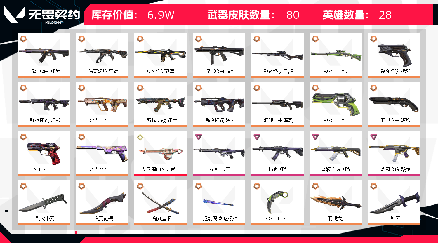 • 皮肤资产价值: 69050
