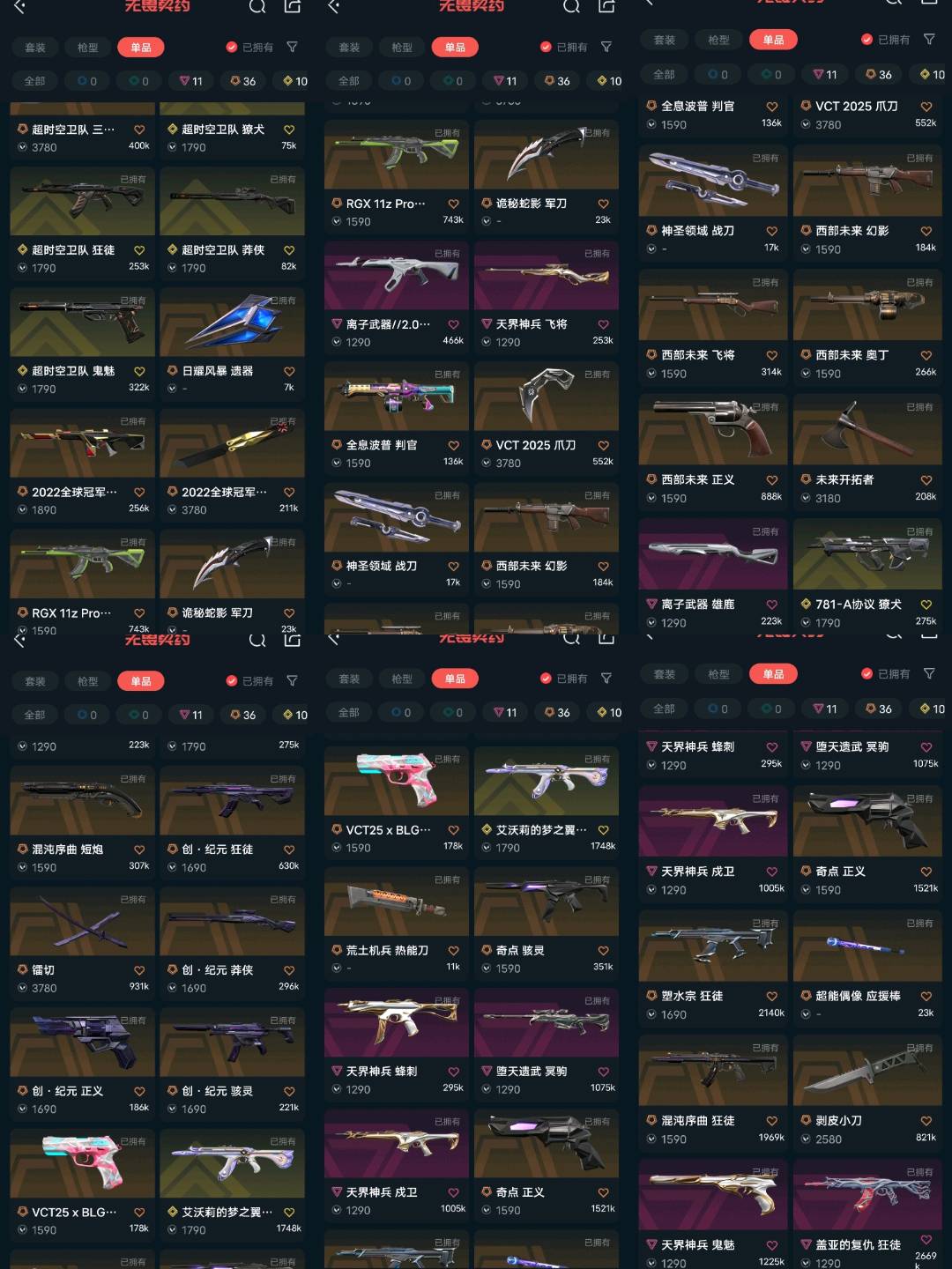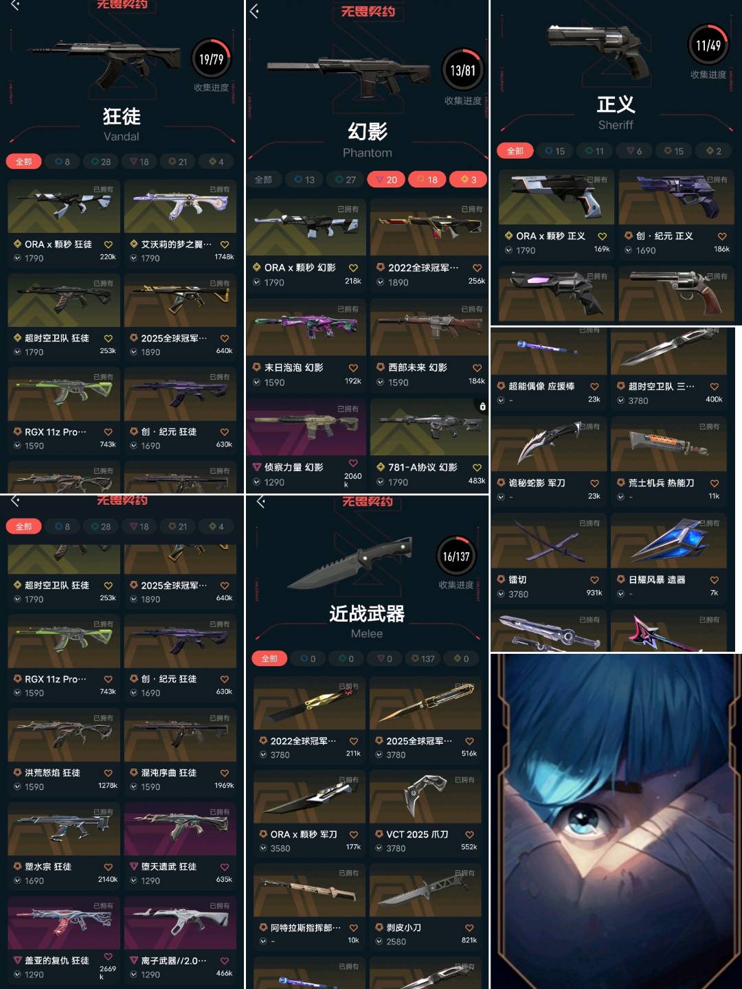 冻结看wg设置;西部未来 奥丁,剥皮小刀,镭切,VCT 2025 爪刀,盖亚的复仇 狂徒,洪荒怒焰 狂徒,侦察力量 幻影,