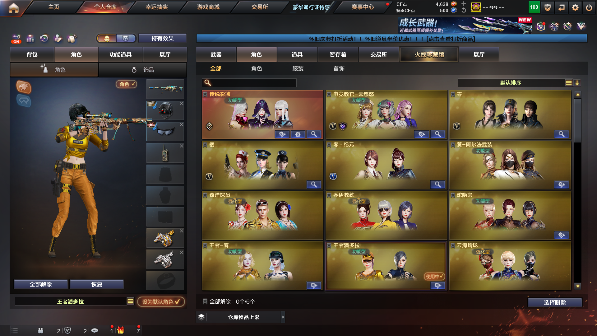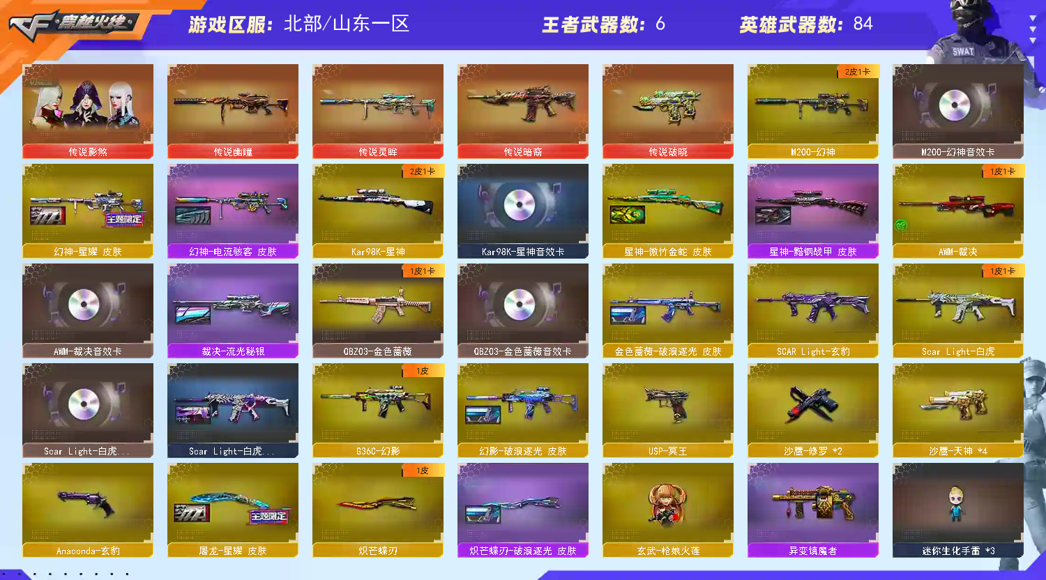 你好,租赁本账号需遵守以下规则: 1. 禁止使用鼠标宏、DMA、外挂等作弊工具,违者将被起诉索赔; 2. 订单即将结束时,禁止开启排位赛,若导致账号禁赛将被永久拉黑; 3. 有问题请填写真实理由,禁止无故撤单、恶意撤单或排位离线,违者将被拉黑 ⚠️ 特别提醒:恶意开挂导致账号封禁的,将被起诉至法院索赔。 ---;炽芒蝶刃,传说影煞,电竞教官-云悠悠,QBZ03-金色蔷薇,传说幽瞳,G36C-幻影,M200-幻神,