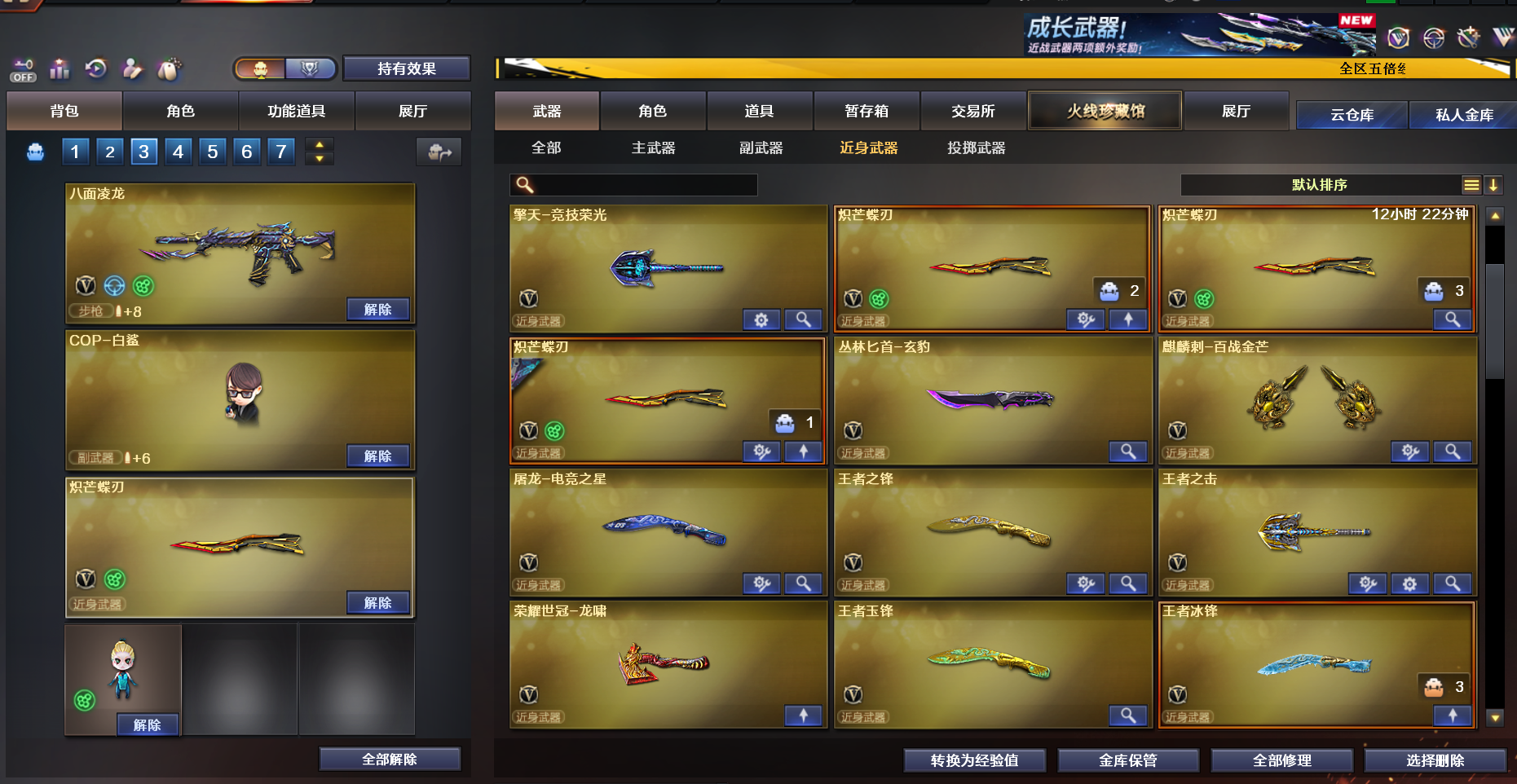 生化爆破号超核玩家-四防沙漠玫瑰传说星骇几个四防角色双炼狱泡泡象-双蝴蝶刀 冠军之特 冠军之刃 usp雷暴 荣耀世冠柯尔特等 八面玲珑 双蝴蝶 鲨鱼手枪 龙宝手枪 小人枪清道夫 -鲨臂-音效卡:幻神卡裁决卡98k卡 qbz卡 白虎卡雷神 卡双炼狱卡等等-斗鱼皮肤炼狱-蝴蝶刀皮冠军之幻皮 宠儿皮 星火小队 ep幻神等一堆皮肤 手枪齐全;USP-雷暴,荣耀世冠-柯尔特,柯尔特-荣耀世冠白鲨2023,柯尔特-冠军之特,炽芒蝶刃,Knife-冠军之刃,沙漠玫瑰,
