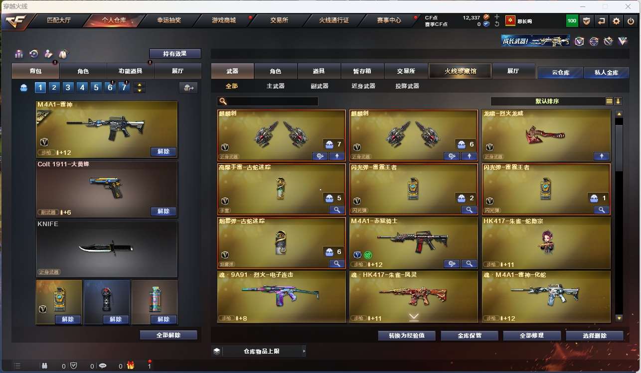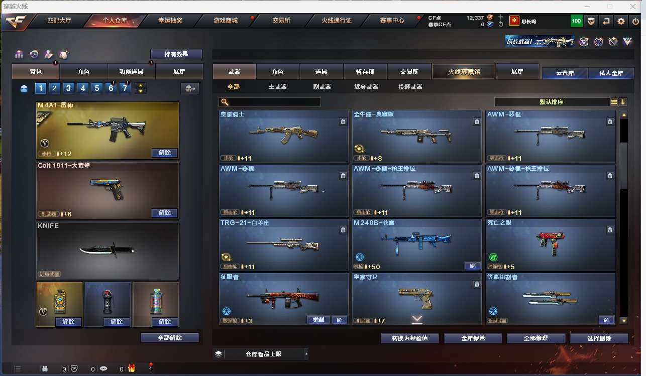 【m200幻神+周瑜+丹凤+冠军之特+冠军之刃】【qbz金色蔷薇】【火麒麟+卡+冠军之心+呛娘凯撒林】【雷神+卡+冠军之魄】【毁灭+卡+冠军之怒+呛娘格雷姐妹】【黑骑士+卡+白马银呛】 【武器:黑龙 无影 黑武士 机械迷城 锦绣游龙 热带奇洋 战神 王者之烈 极光 盘龙 烈龙 炼狱 aa12雷霆】 【6手呛:冠军之特 修罗*动感闪耀 王者之魂】 【5刀具:屠龙 龙啸 麒麟刺 动感闪耀 热带奇洋】 【小人呛:雷神精英刀锋 火麒麟灵狐 雷神呛娘蕾安娜】 【音效卡:毁灭音效卡 雷神音效卡 黑骑士音效卡 白虎音效卡 极光音效卡 火麒麟音效卡 】;柯尔特-冠军之特,Knife-冠军之刃,RPK-盘龙,QBZ03-金色蔷薇,M200-幻神,