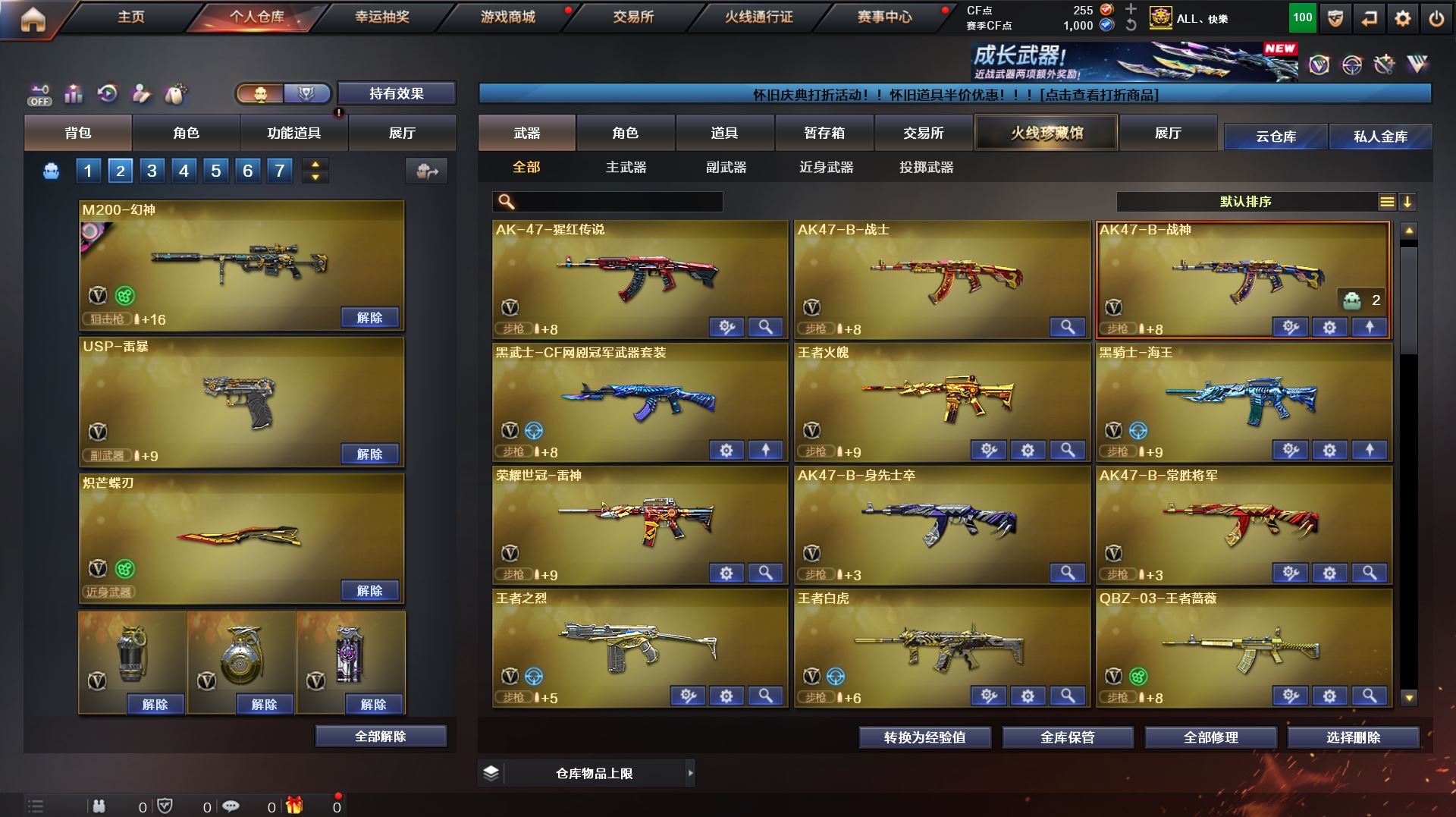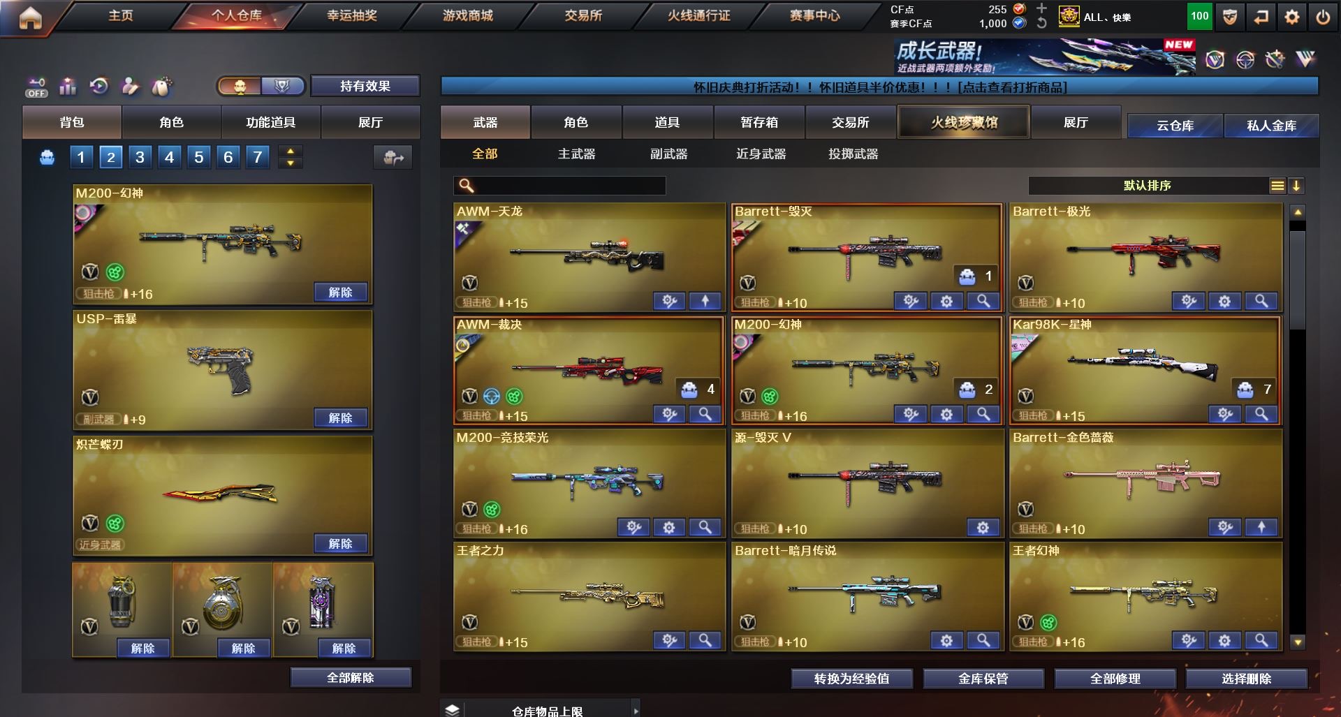 时间快到不要开排位 谢谢!;USP-雷暴,柯尔特-冠军之特,炽芒蝶刃,电竞教官-云悠悠,QBZ03-金色蔷薇,M200-幻神,Kar98K-星神,