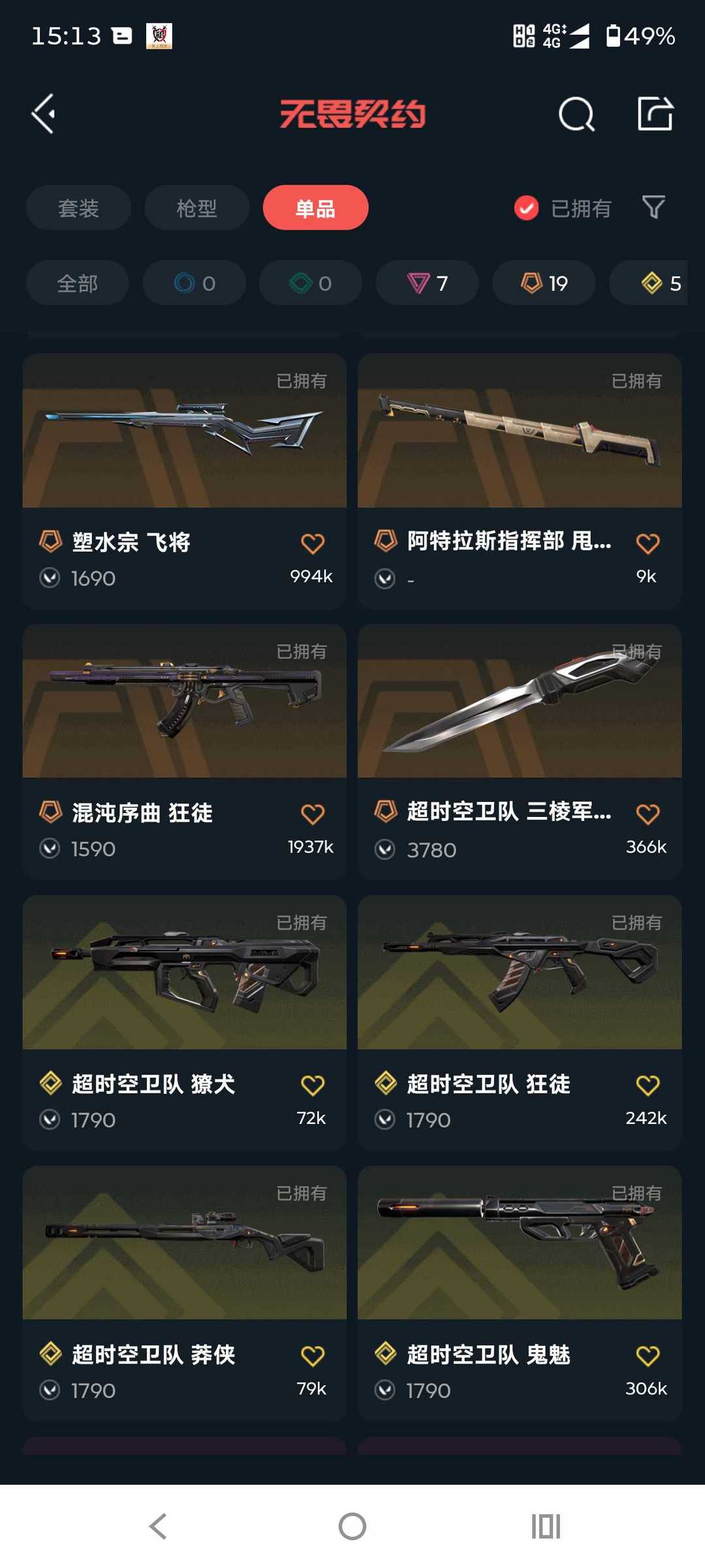 首页 > 租号大厅 > 无畏契约-wegame > wegame/wegame > 可排位 25年冠❤️超时空掠影套装❤网红三菱刀 VCT爪刀❤️RGX盖亚塑水宗混沌侦查力量猫猫