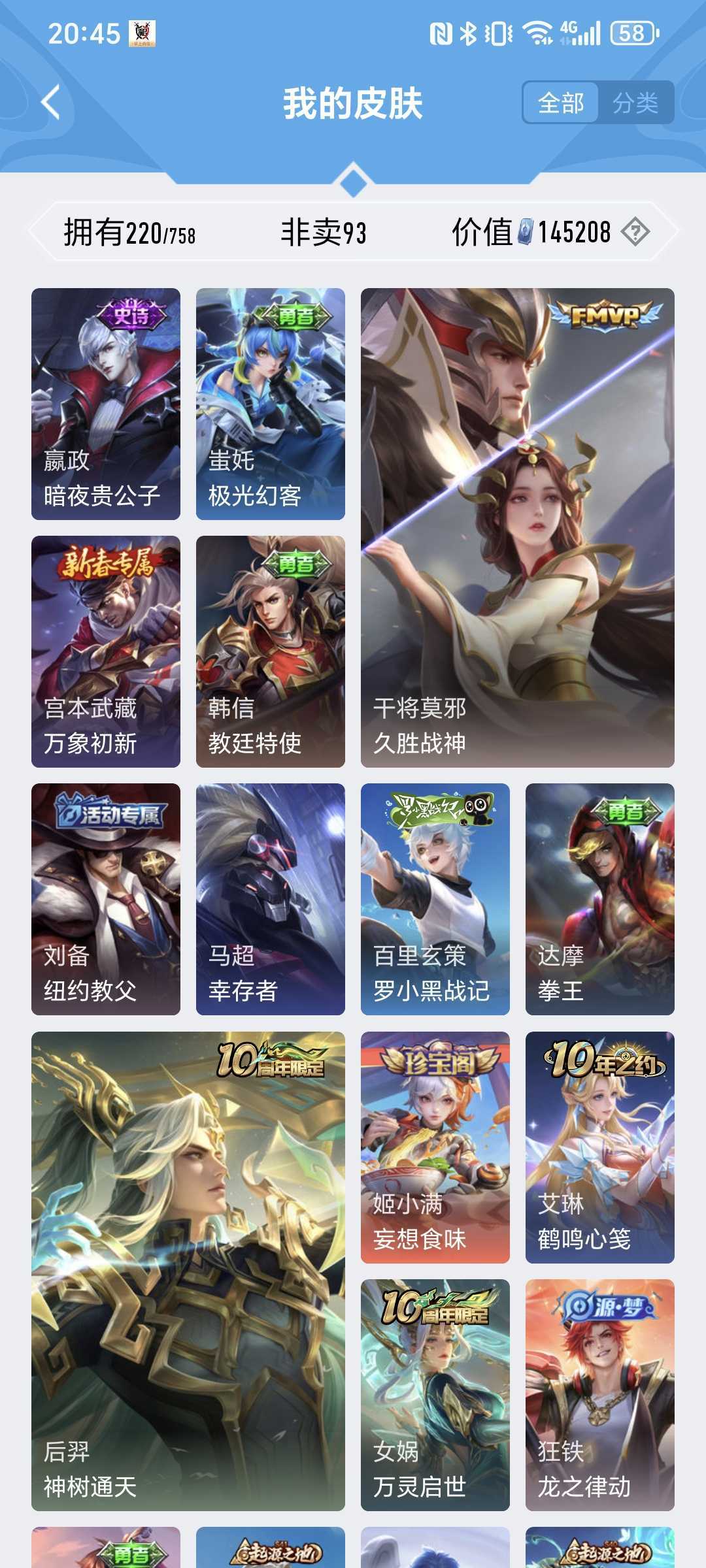 220皮V6/云霓雀翎/久胜战神/山海玄木吟/傲雪梅枪/琥珀纪元/漠中幻影/万灵启世/5传说70史诗