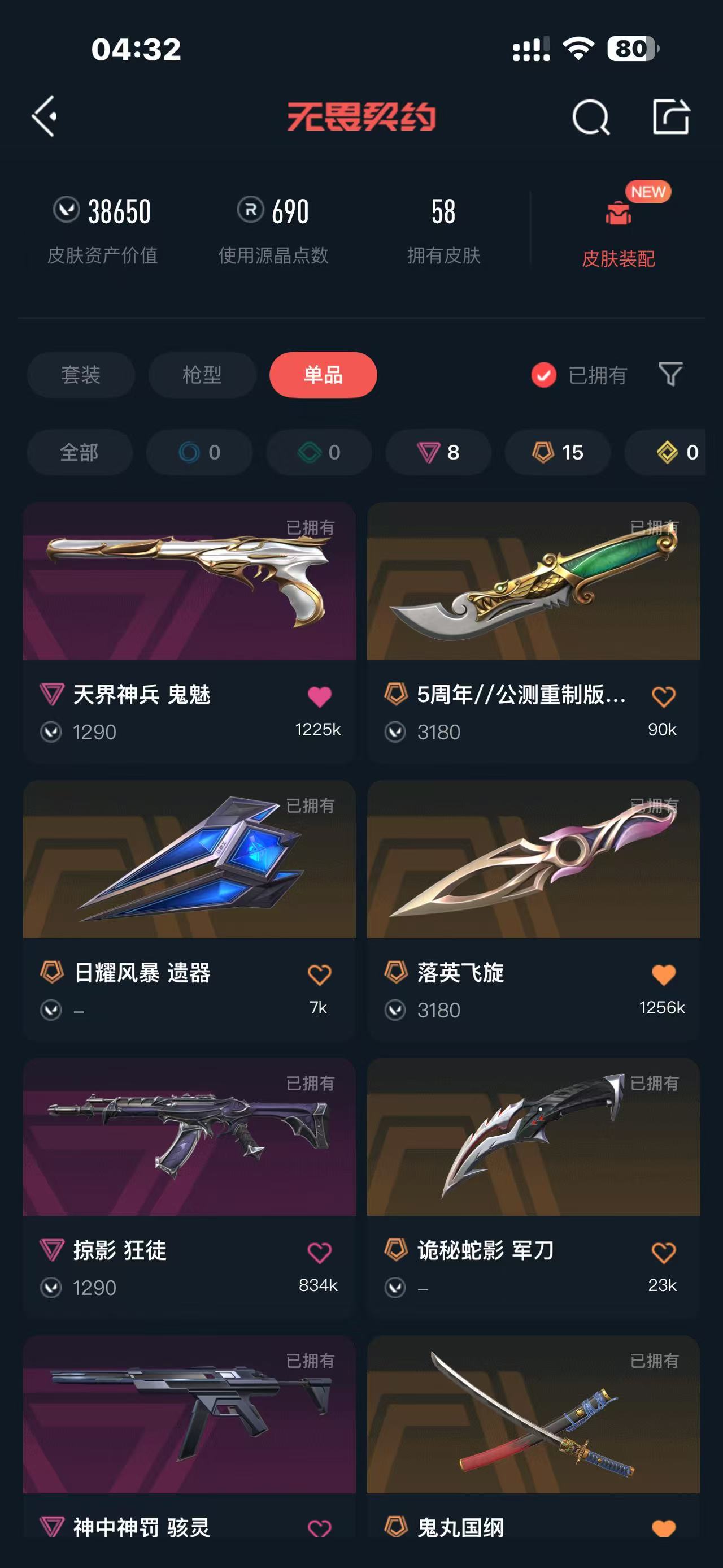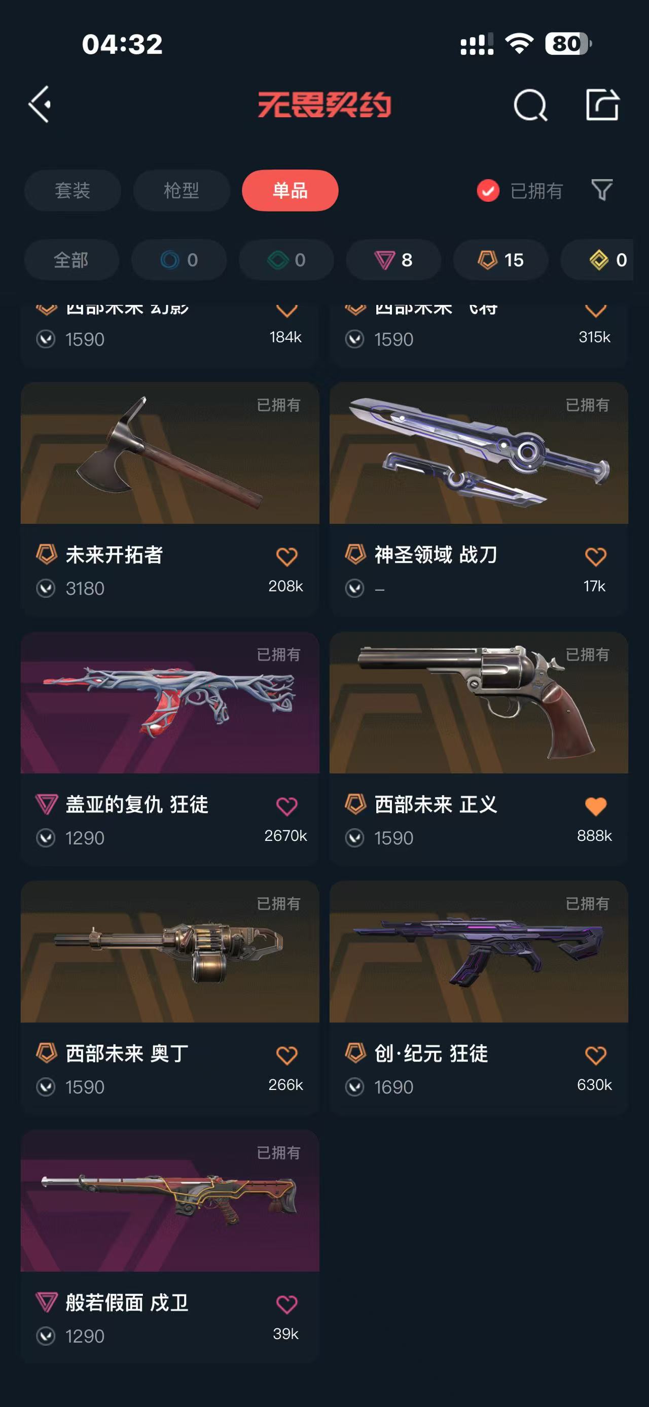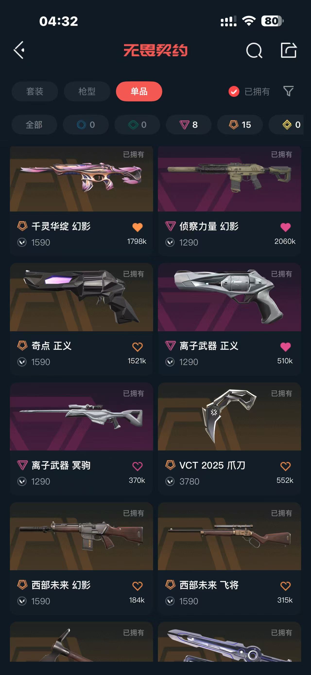 可排位 莲花幻影 盖亚狂徒 侦查幻影 奇点正义 西部套 VCT爪刀 鬼丸国纲 创纪元狂徒 掠影狂徒