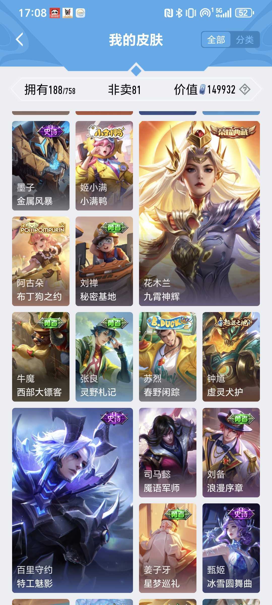 【非沄直接上号】极品V10★三历史国标★430皮★六典藏★诸葛亮新典藏★虎年五限定★鸣剑戈影★活力突击️★多限定