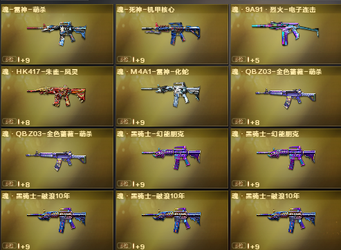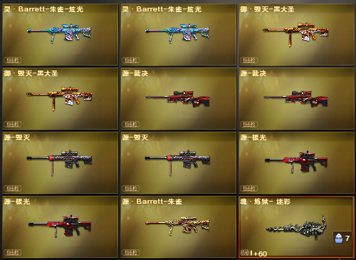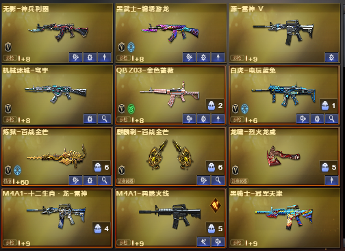 宗师5❤️白虎❤️炼狱百战金芒❤️葵❤️QBZ❤️毁灭虹光❤️裁决火麒麟心动糖果❤️黑骑士海王