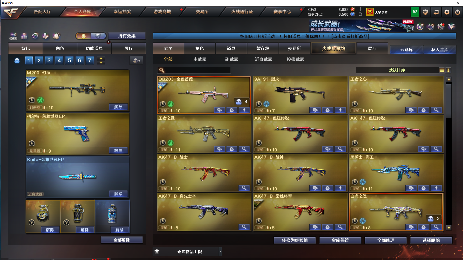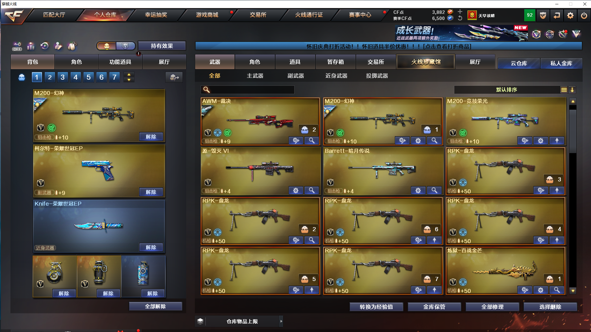 爆破生化号/荣耀世冠ep全套/幻神3皮青鹤+ep+黄忠/裁决三件套/usp雷暴+3柯尔特+usp冥王/6盘龙+3列龙;USP-雷暴,电竞教官-云悠悠,RPK-盘龙,QBZ03-金色蔷薇,M200-幻神,