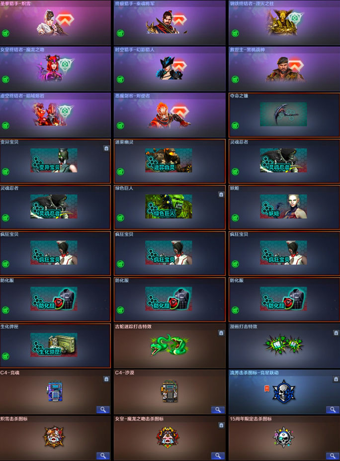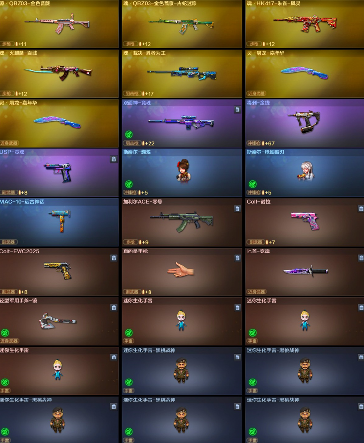 沙漠玫瑰/6烈斯泰尔蝴蝶+枪娘暗刃/6盘斗鱼炼狱/白虎电玩蓝兔/柯尔特电竞之星/猎手终结者全皮肤