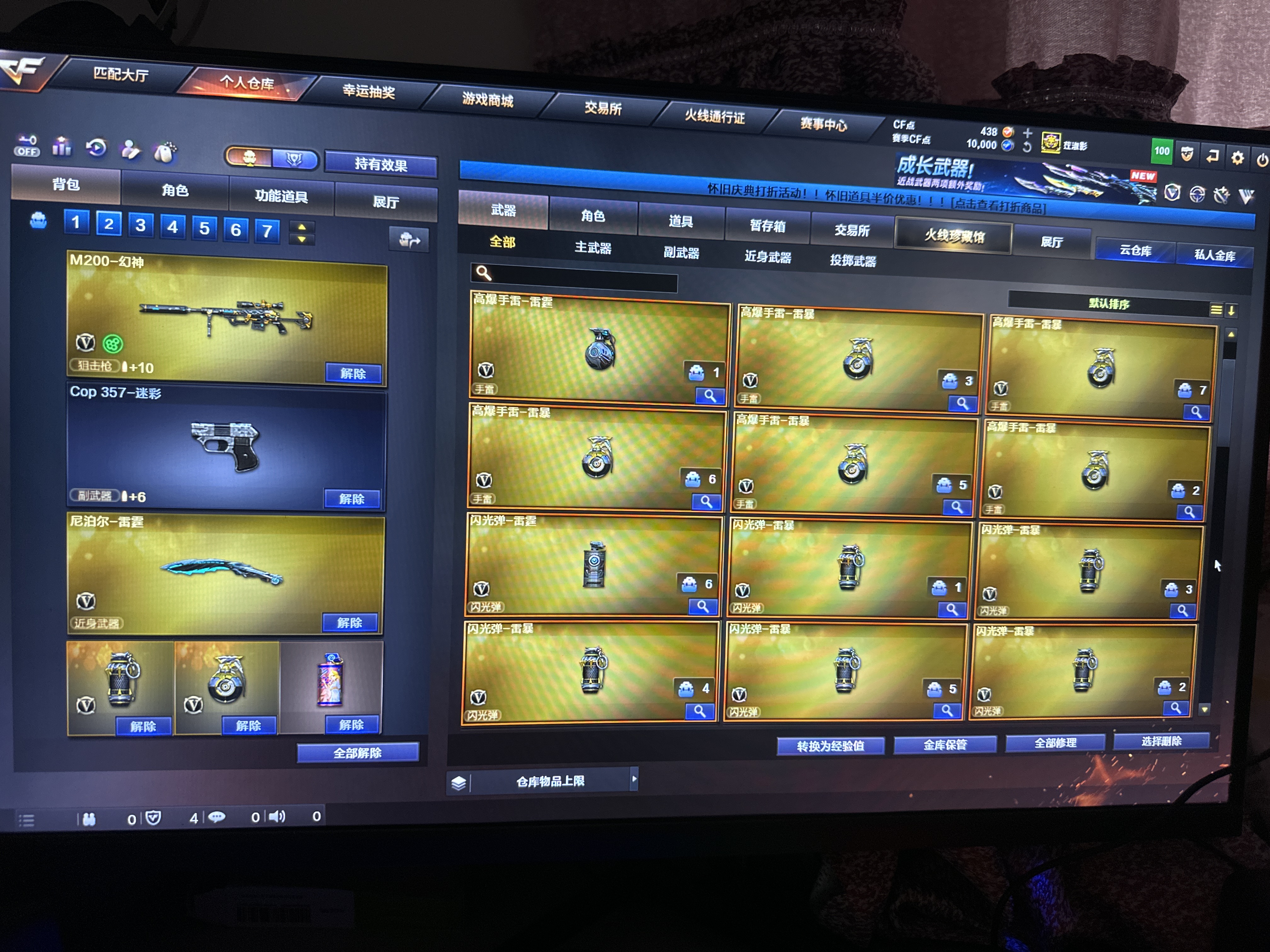 1.葵零审判者樱魅影零纪元,幻神,雷神4皮+音效,毁灭2皮+音效,王者之魄势锋击幻翼力怒啸悦心,爆破全套弹夹烟雾头护目镜 2.可排位,排位中途不可退出、挂机;USP-雷暴,RPK-盘龙,M200-幻神,
