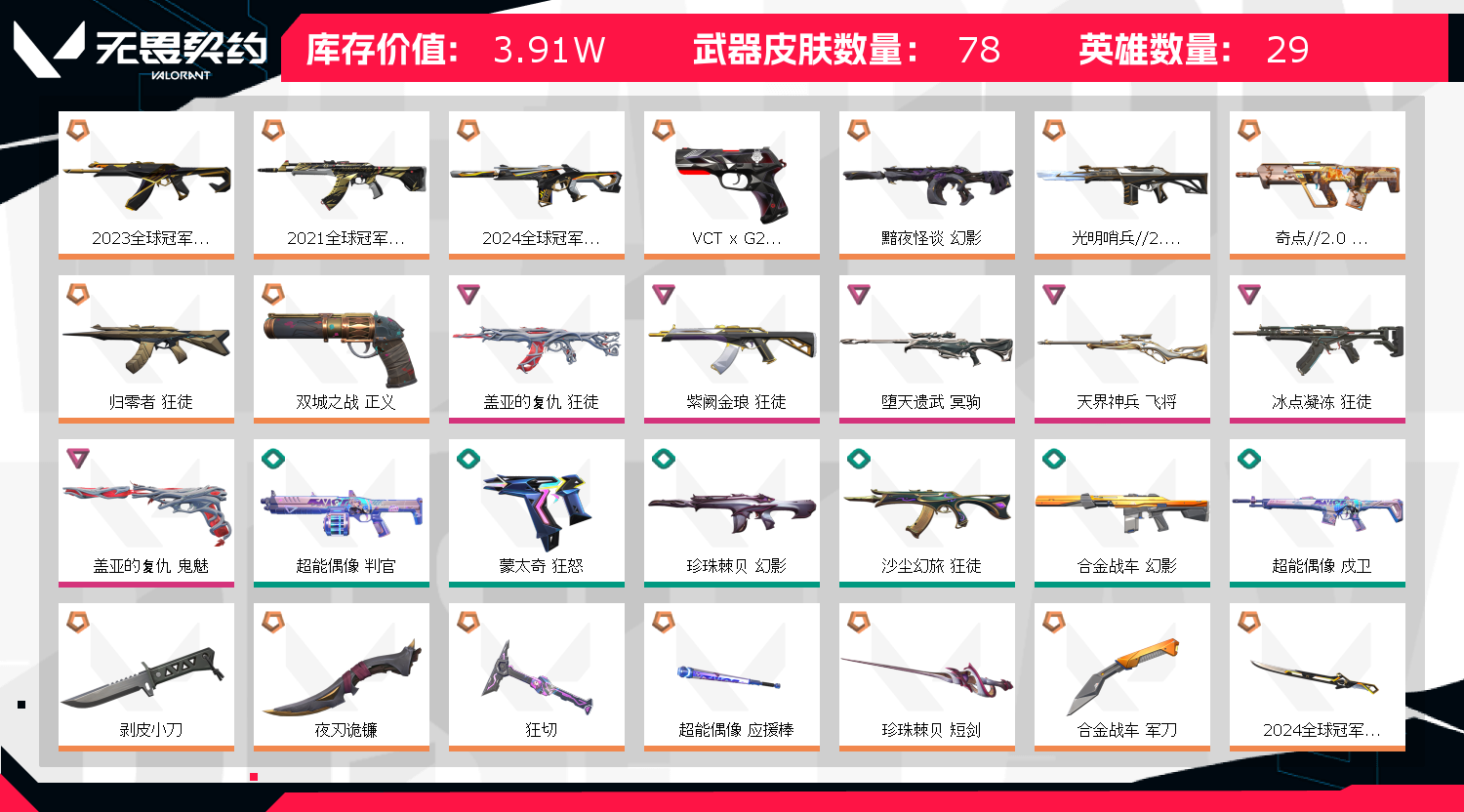 • 武器皮肤数量: 78