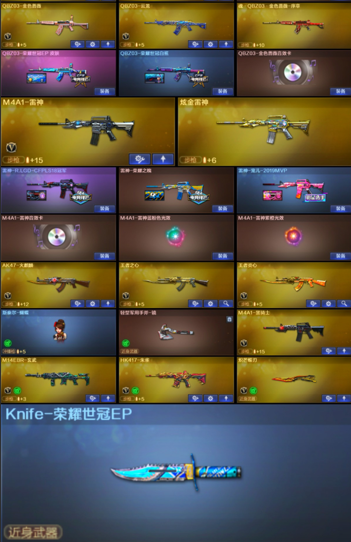 EP世冠套-传说影煞/满配副手/幻神三件套5皮/王者星霆/白虎冠军/QBZ世冠EP/雷神荣耀/EP刀