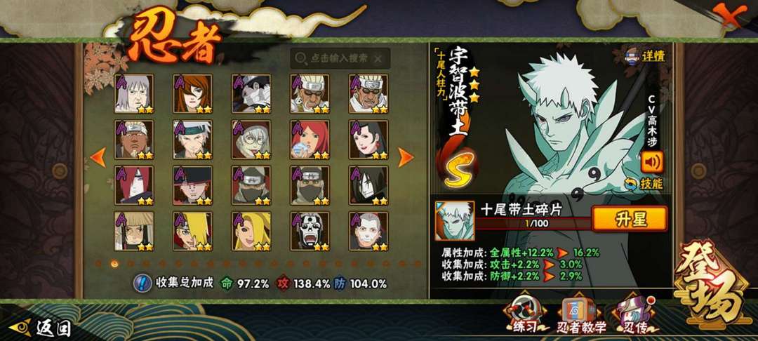 19s40+A,已招募十尾带土六道带土,漂泊扉间,六道佩恩等付费忍者