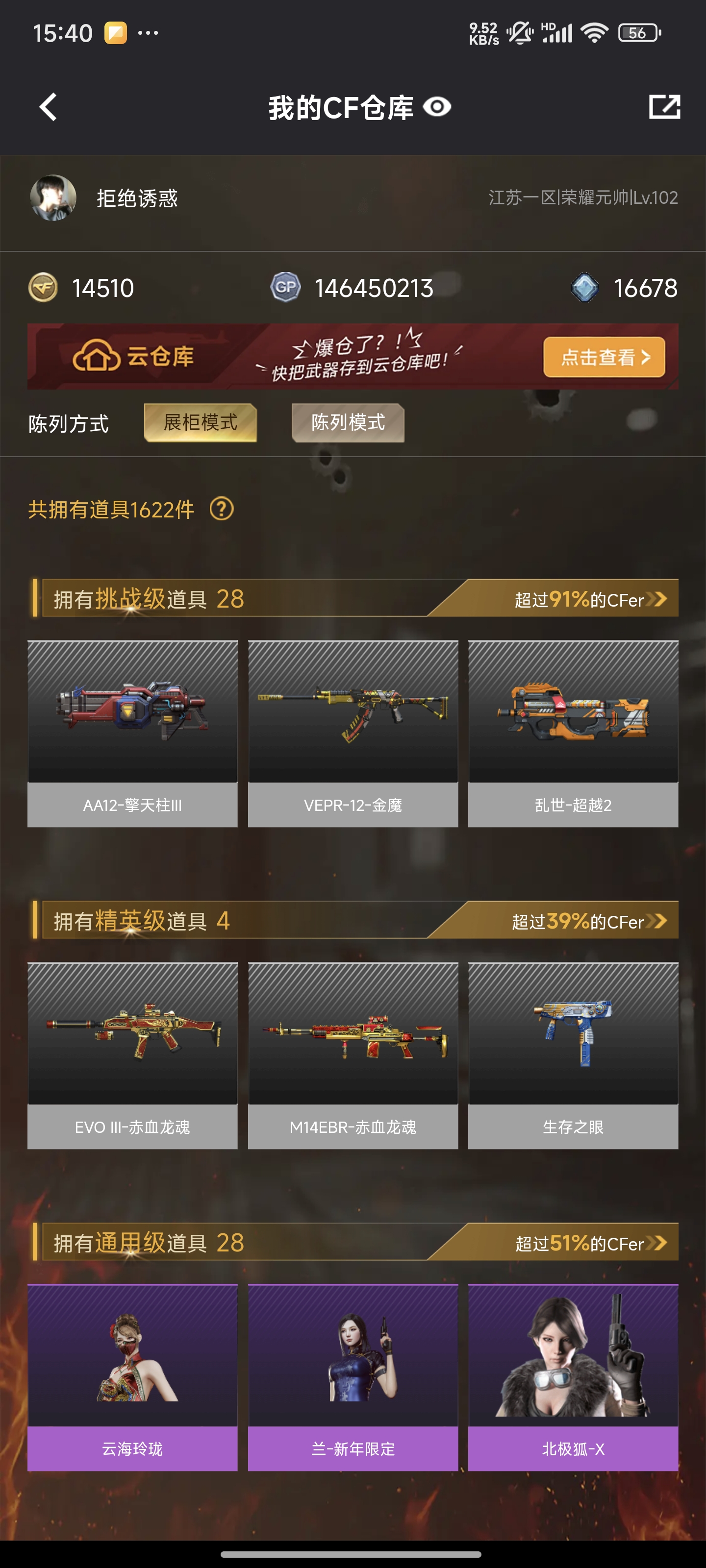 • 游戏区服:穿越火线 / 电信区 / 江苏一区