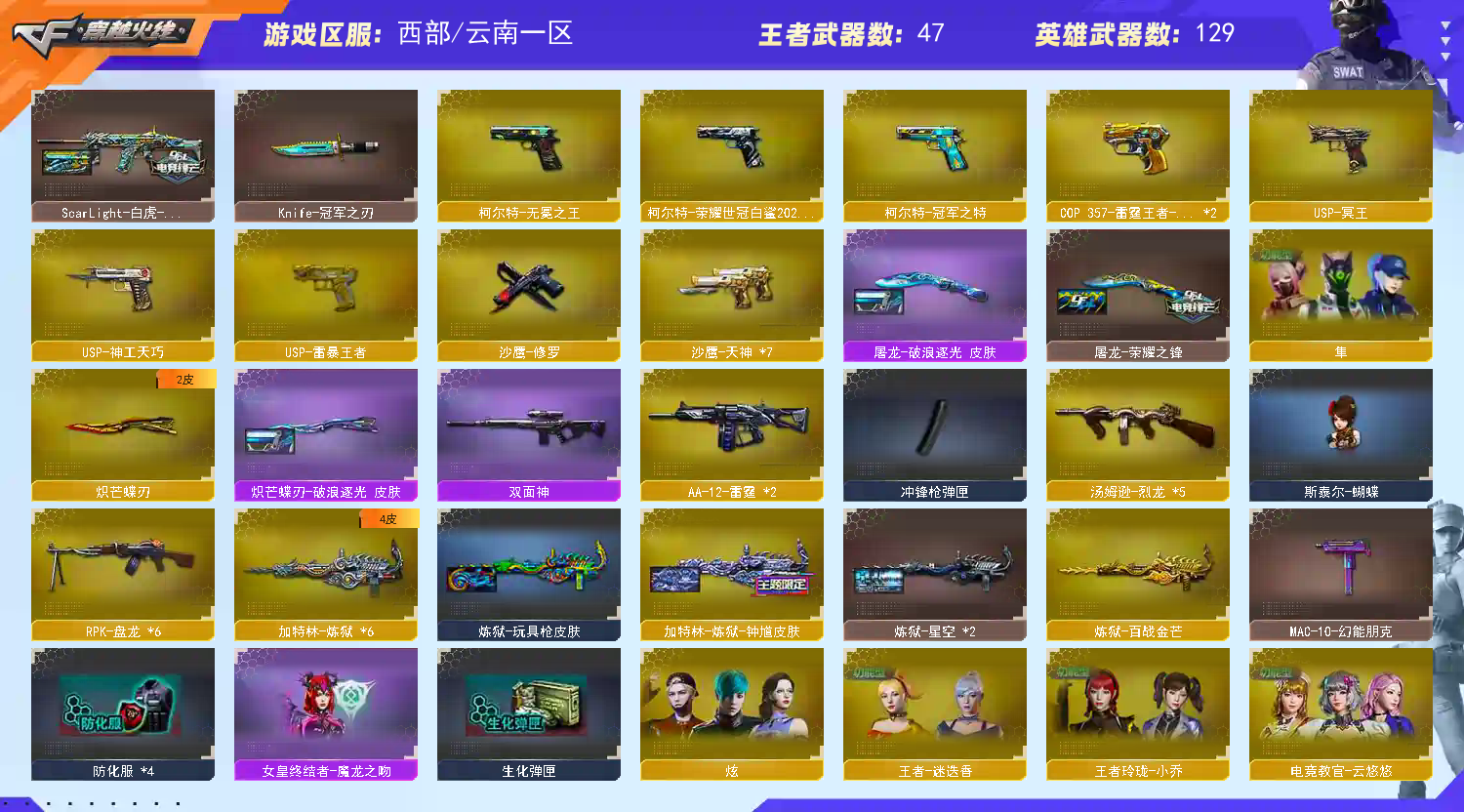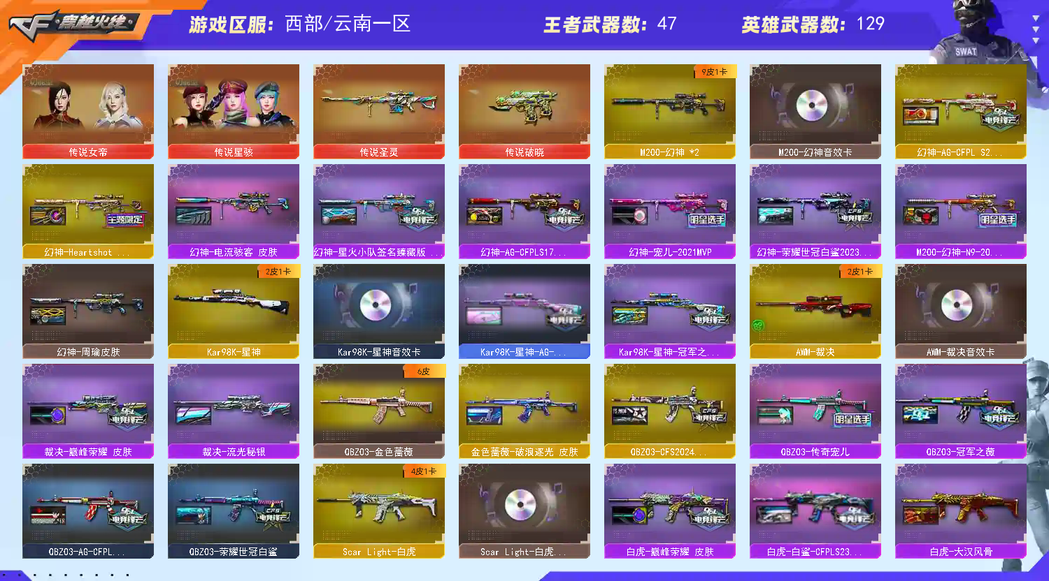 西部爆破天花板女帝 幻神9皮带卡 98k双皮肤 qbz5皮肤 白虎三皮带卡 满手枪子弹;柯尔特-无冕之王,USP-雷暴王者,柯尔特-荣耀世冠白鲨2023,柯尔特-冠军之特,炽芒蝶刃,Knife-冠军之刃,传说星骇,