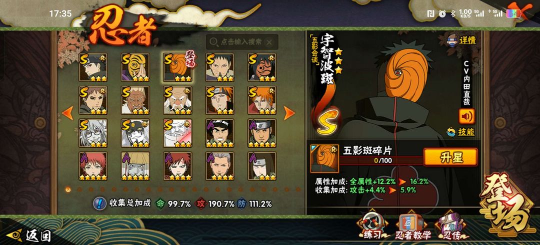 • 火影段位: 上忍3阶